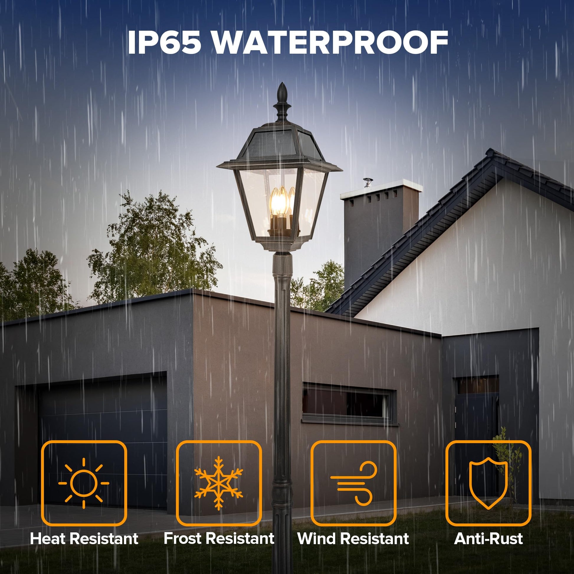 • 【WEATHERPROOF & DURABLE】Rust-Brown designed with durable Die-cast aluminum and equip 4 high-quality glasses, IP65 waterproof street lamp is suitable for outdoor use in all weather.