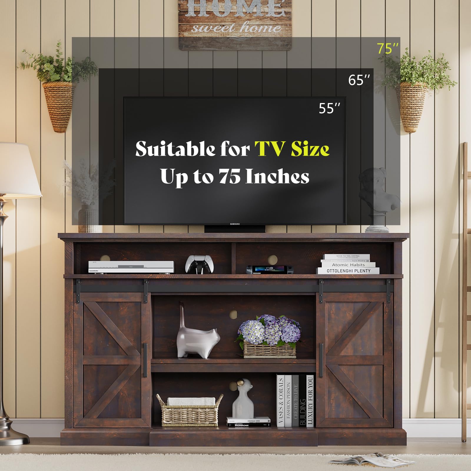 [Large Tall TV Stand] Crafted with precision & an eye for elegance, this big entertainment center will elevate your farmhouse decor. Overall Size:40"H x 66"W x 15"D (farmhouse tv stand for 75/70/65 inch TVs etc)