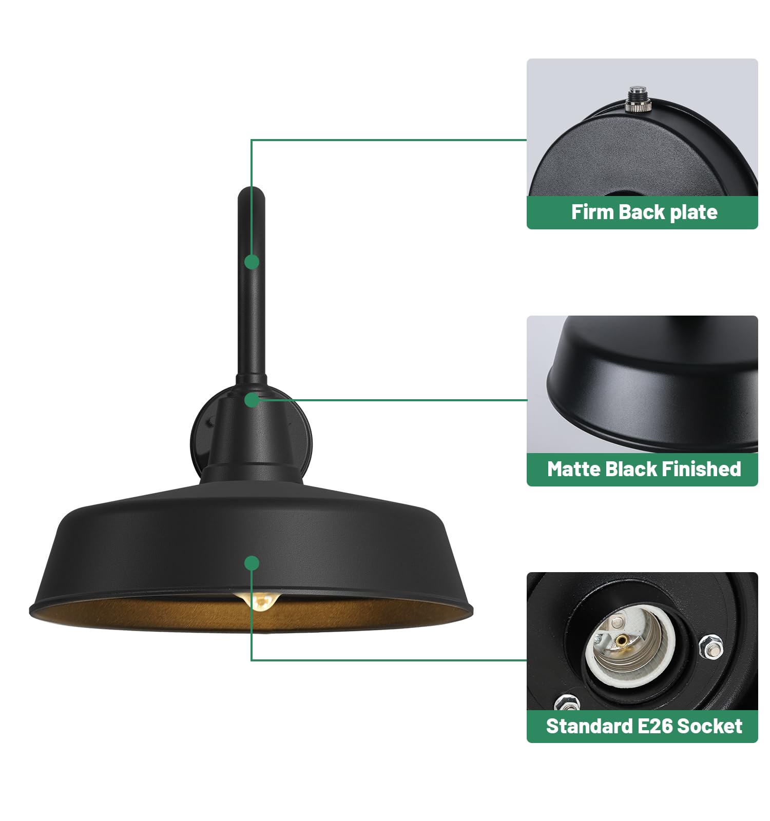 Energy-Efficient Outdoor Barn Lights:Upgrade your outdoor lighting to our energy-efficient barn lights. These lights are equipped with advanced technology that automatically turns them on at dusk and off at dawn, ensuring optimal energy savings. Say goodbye to wasted electricity and enjoy the convenience of hassle lighting that adjusts to the natural light cycle