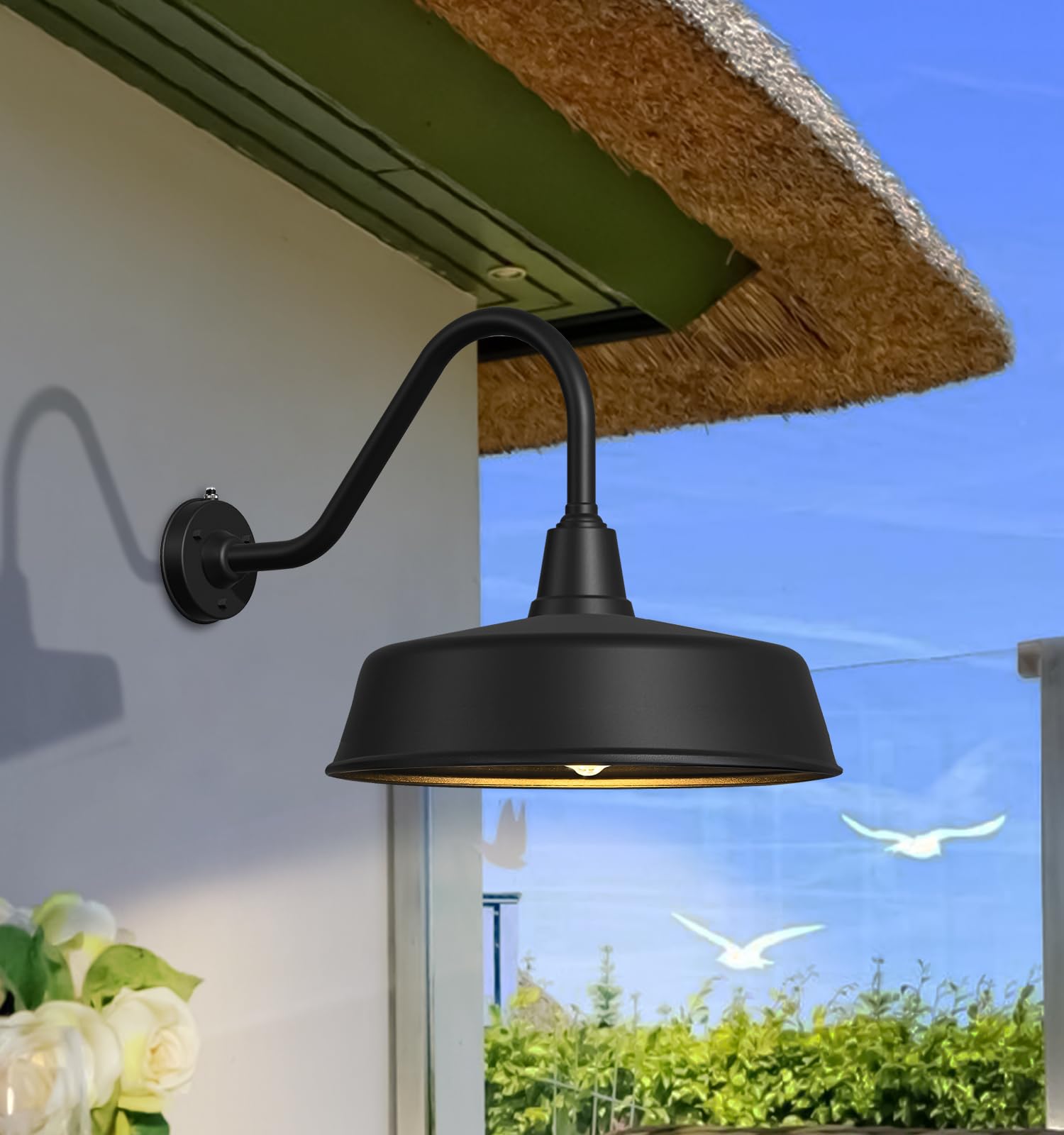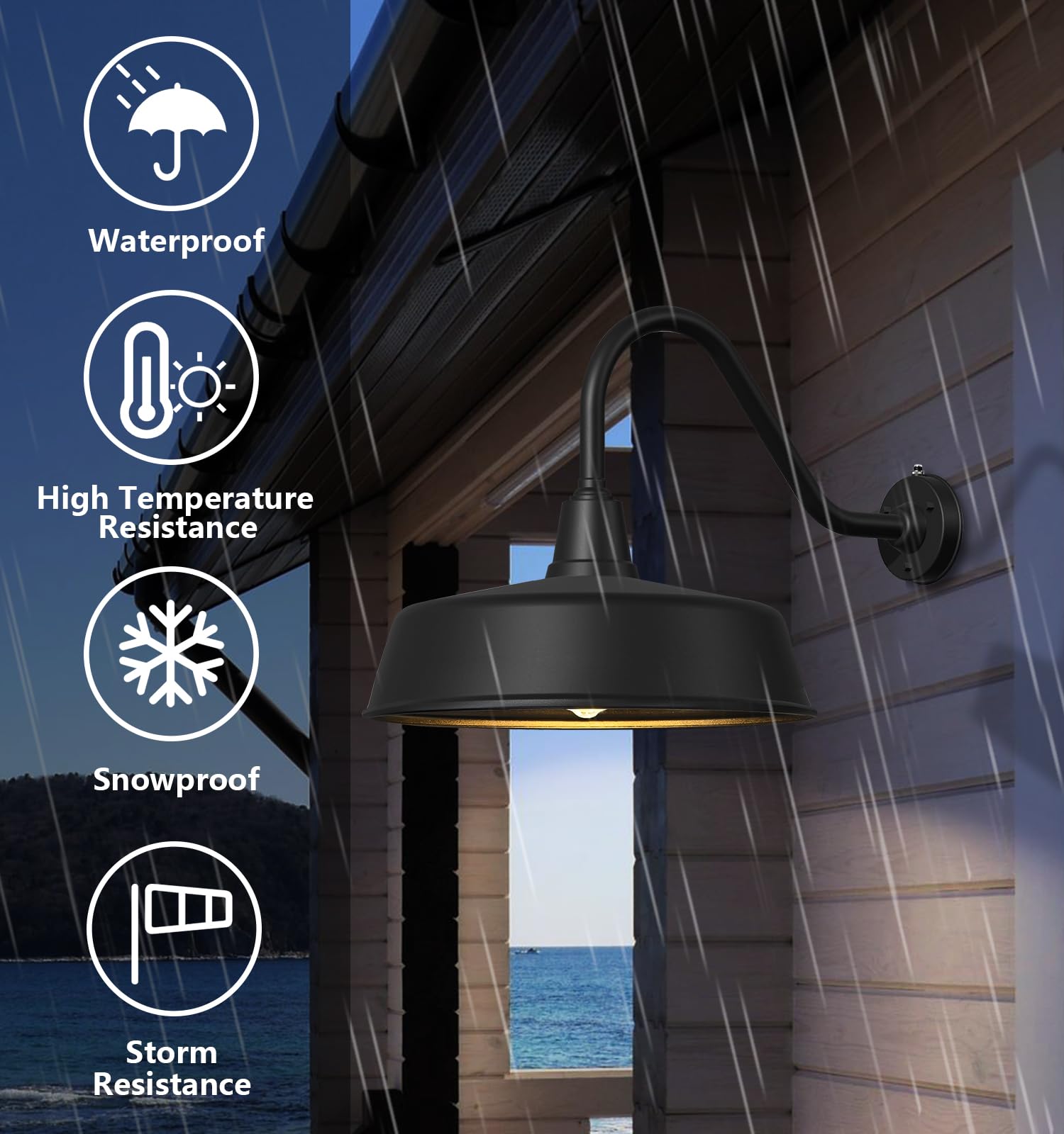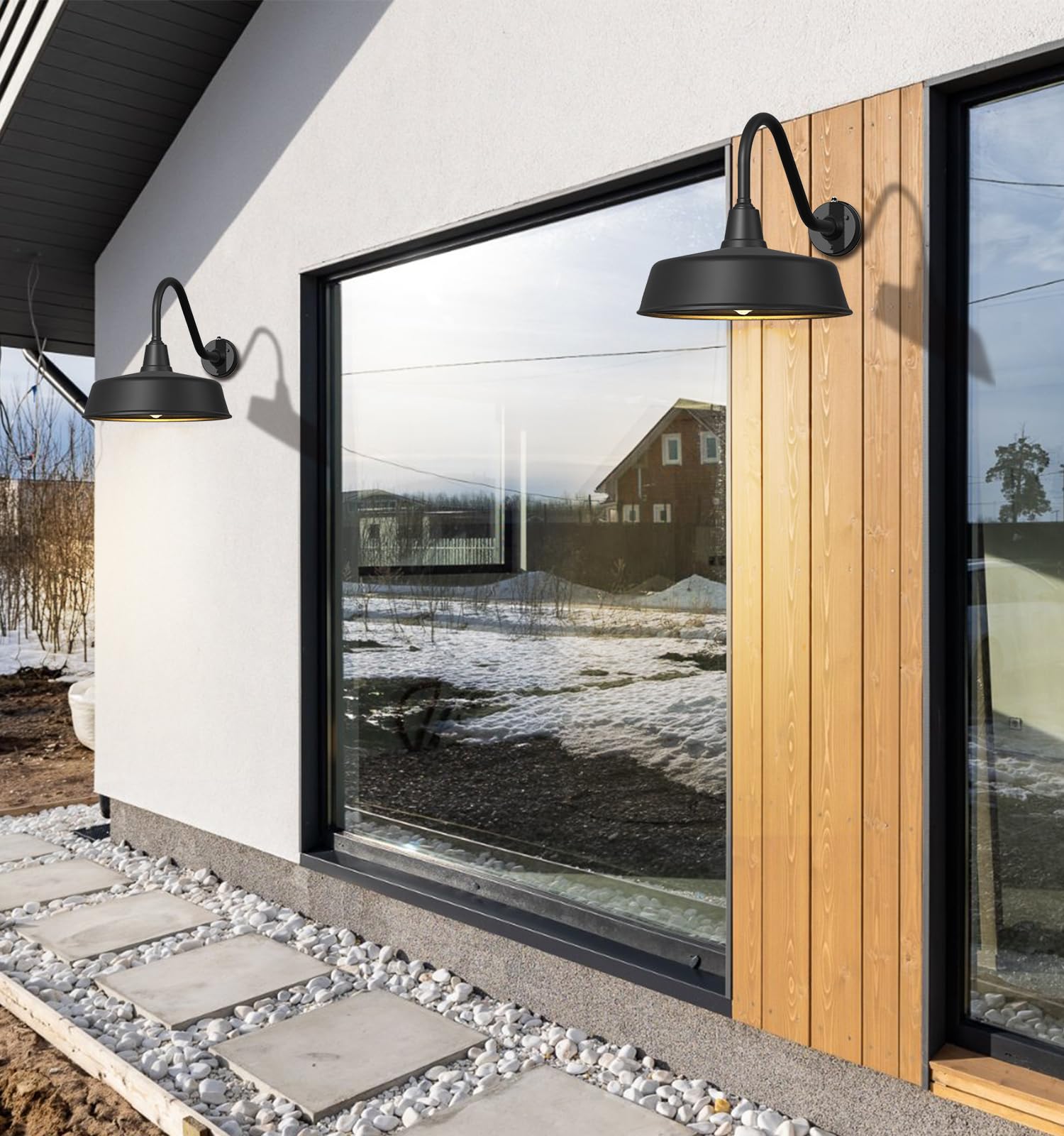 Sleek and Versatile Design:Enhance the visual appeal of your exterior with our sleek and versatile barn lights. The modern design, complemented by the classic gooseneck arms and a curved top cover, adds a touch of elegance to any outdoor area. Whether you're lighting up a barn, patio, or garden, these lights will effortlessly elevate the aesthetics of your space