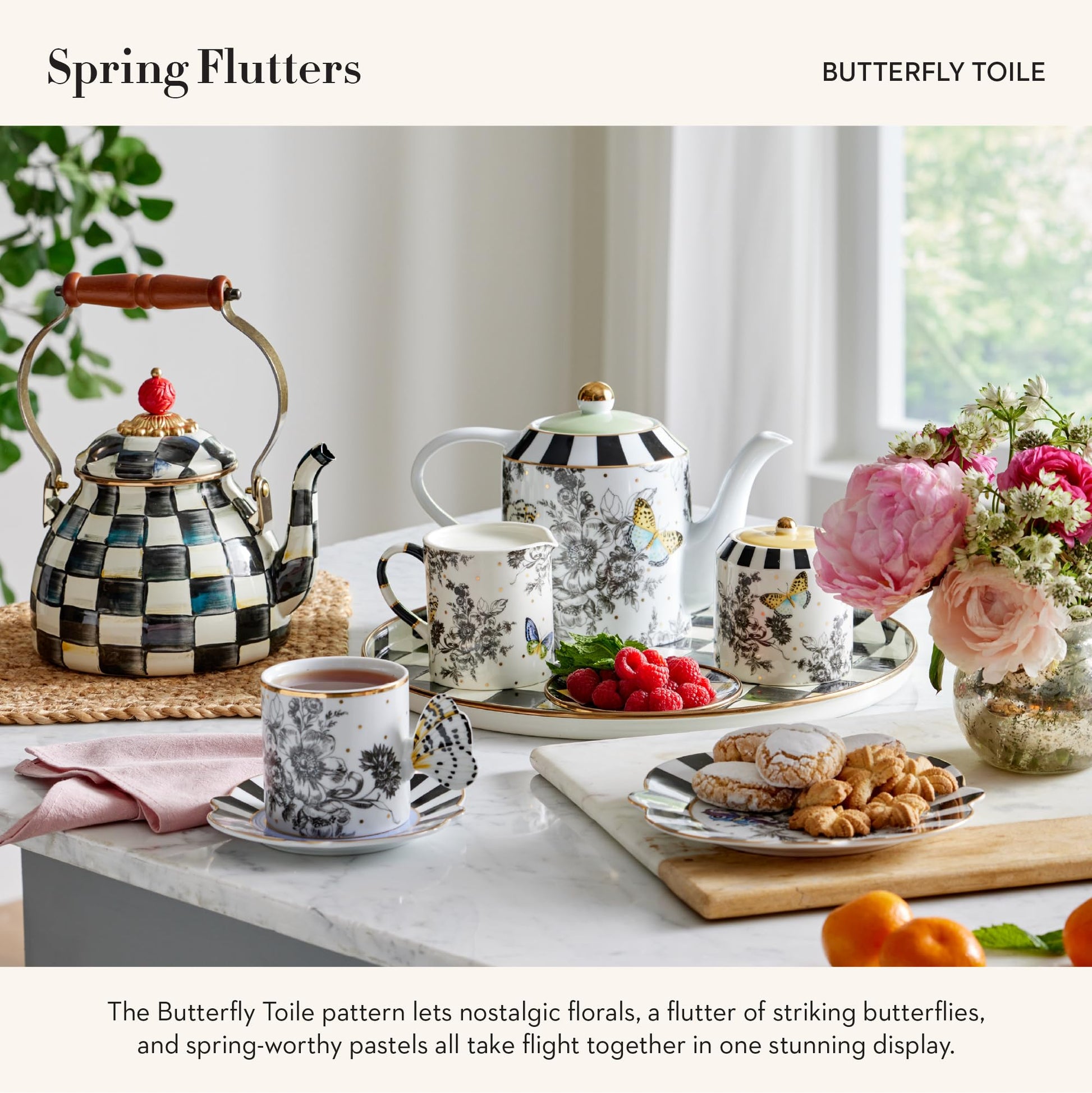 ELEGANT STORAGE ESSENTIAL: Our Butterfly Toile decorative kitchen canister set features a flutter of butterflies, bees, and floral patterns. The canister lids are trimmed with hand-painted stripes and gold luster.