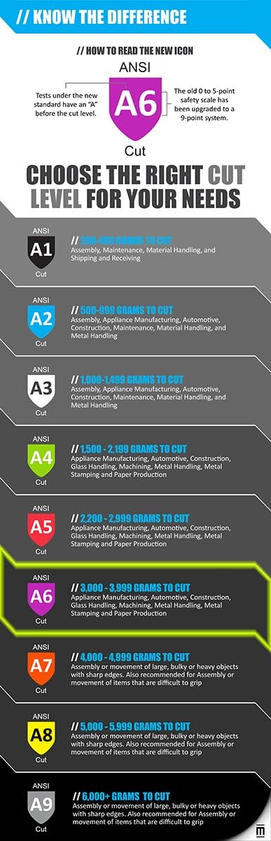 Cut Resistant: ANSI cut level A6 gloves provide superior cut protection when handling sharp objects; Gloves offer a high degree of cut protection while maintaining flexibility
