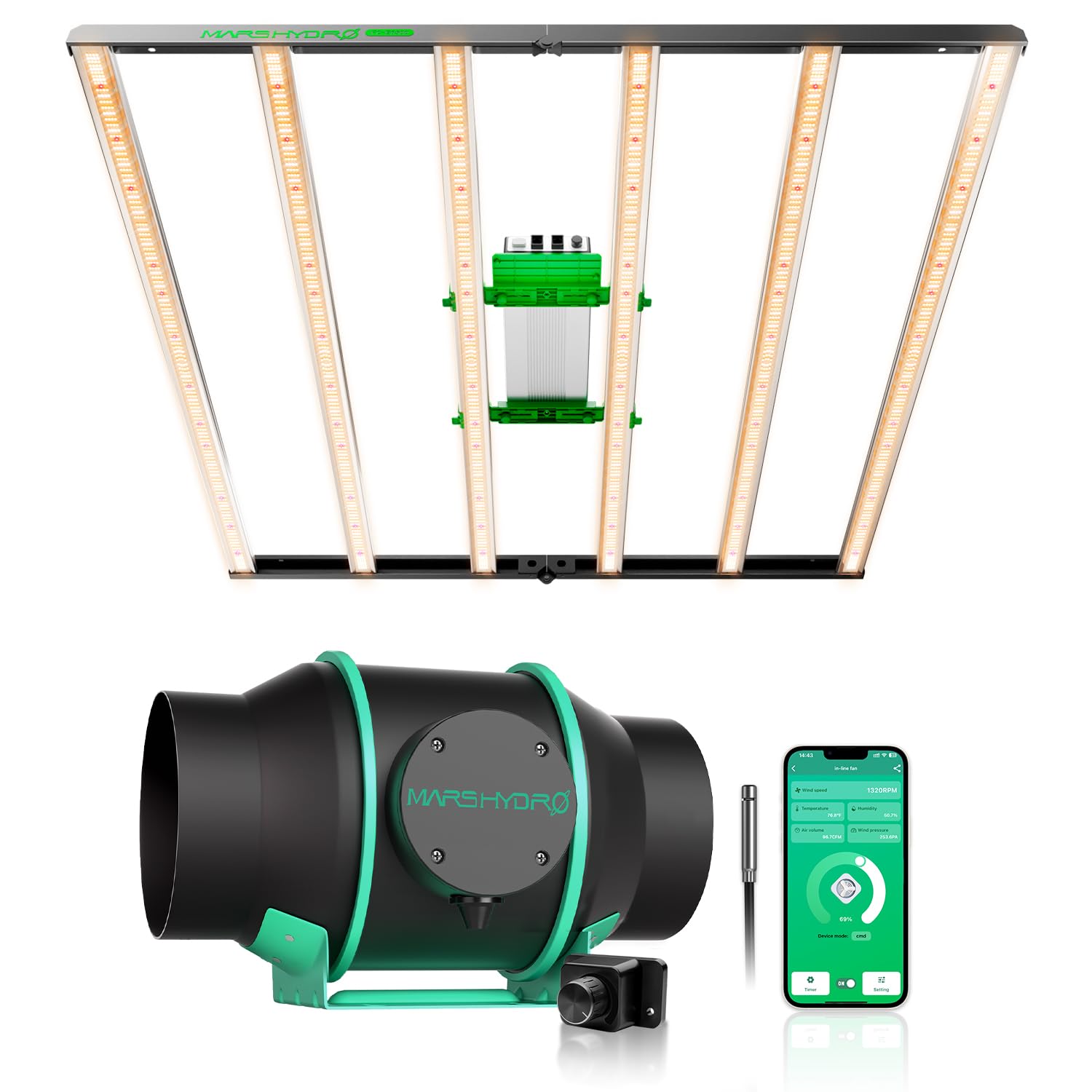 MARS HYDRO 2024 New FC-E6500 Foldable LED Grow Light 5x5ft 730Watt with iFresh 6 Inch Smart Inline Duct Fan with Variable Speed Controller