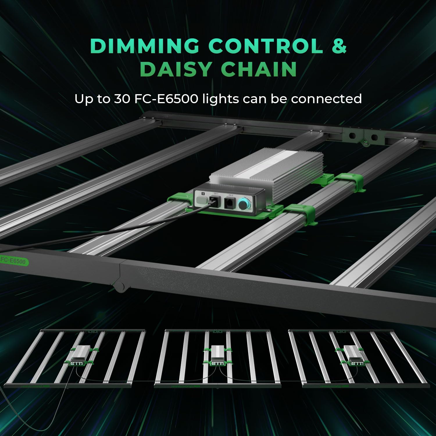 • HIGH-EFFICIENCY LED GROW LIGHT: The New Version FC-E6500 Lighting with 3144 BridgeLux Diodes, 2.8 µmol/J PPE, and 2.5g yield/730watt. smaller footprint for improved crop quality and cost-effectiveness. Ideal for personal (5x5ft) and commercial (4x4ft) use.