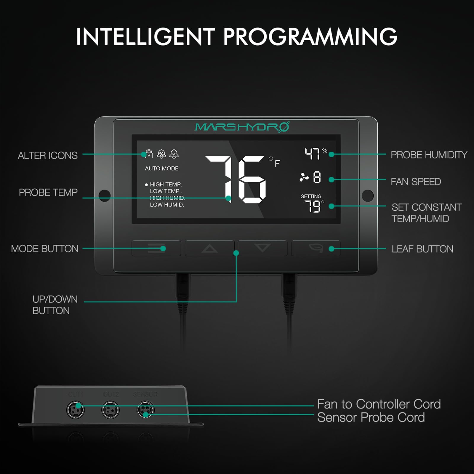 【Customize Temperature&Humidity】The inline fan is equipped with a customized intelligent controller that allows programmable control over temperature and humidity, fan speed, timing, and alarm systems.After customizing the temperature and humidity, the ventilation system will intelligently and automatically ventilate to adjust the temperature and humidity inside the tent.