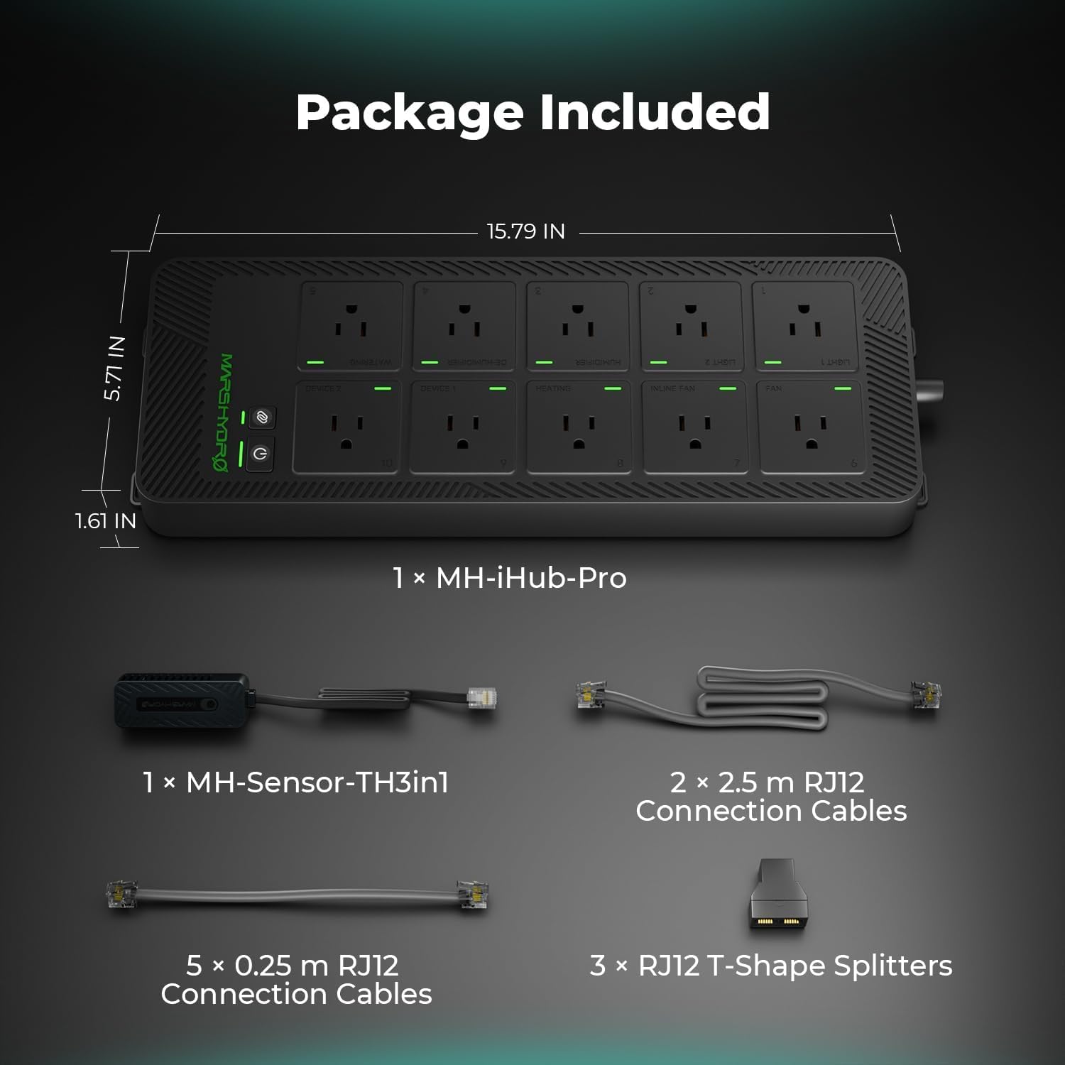 • 10 Outlet Power Strip for Complete Grow Room Automation: The iHub Pro central hub features 10 pre-labeled smart sockets to centrally manage all essential equipment: grow lights, fans, humidifiers, irrigation systems, and more. This integrated system replaces tedious manual controls with intelligent centralized regulation. Through the dedicated app, users can remotely monitor devices and implement centralized power strategies, making environmental management simple and highly efficient.