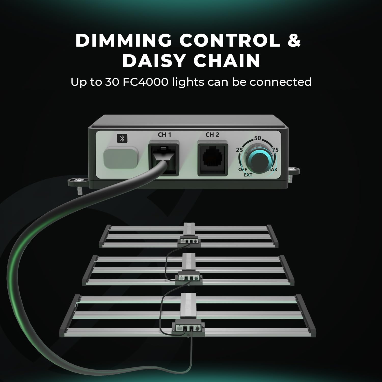 DIMMABLE DAISY CHAIN: MARS HYDRO FC4000 grow light can be dimmed manually or automatically via the APP, guaranteeing that the light intensity is customized to align with your grow schedules. Link up to 100 FC4000-EVO LED 320-watt grow lights using the daisy-chain feature.