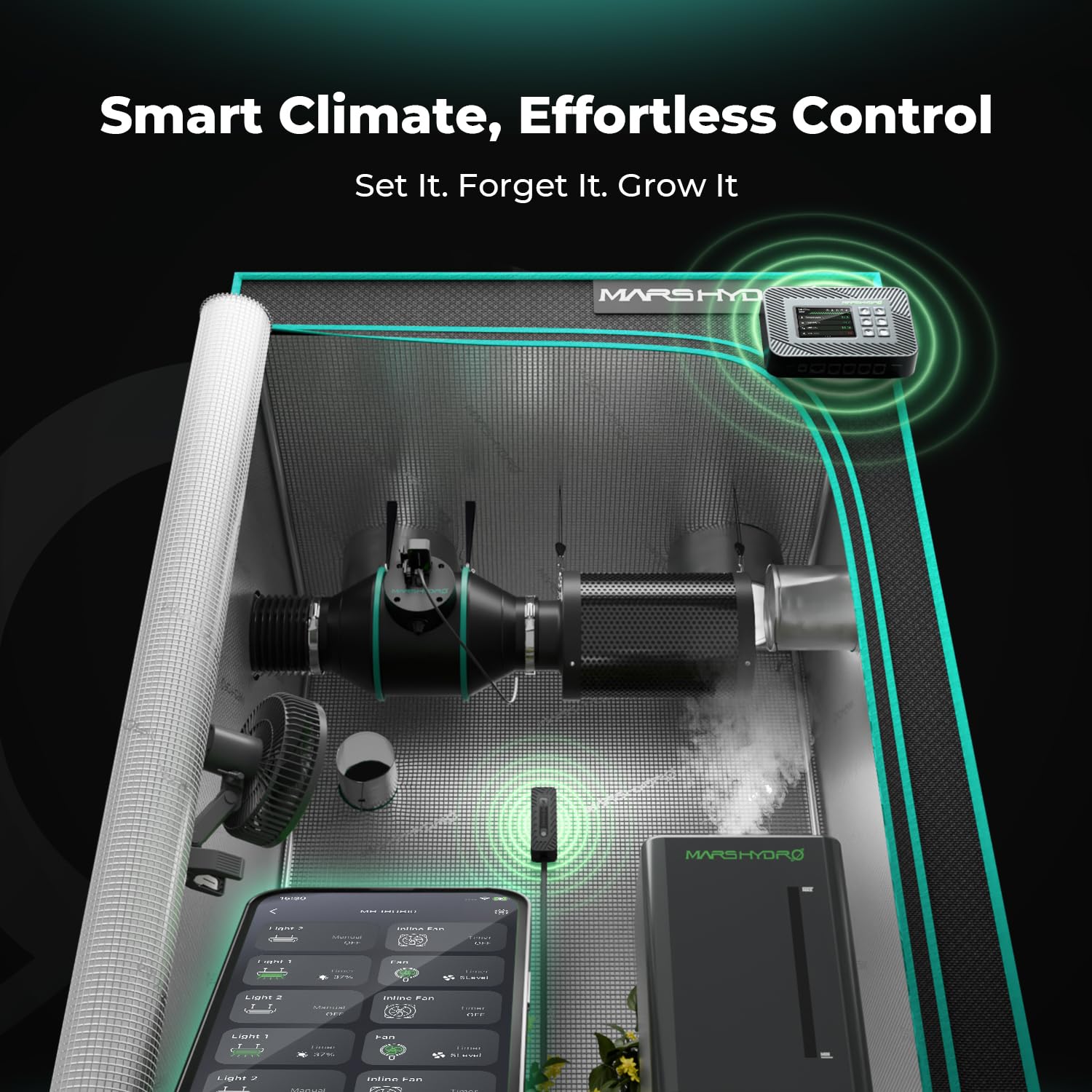• Intelligent Stage-Based Automation: MARS HYDRO grow tent climate controller auto manage your grow like a pro with scenario-based automation. Customize light and climate strategies for each plant growth stage: seedling, vegetative, flowering, and more. Once set, the system intelligently switches to the next phase based on your preset timeline, ensuring your plants always get what they need. No daily tweaks required, just set it and grow.
