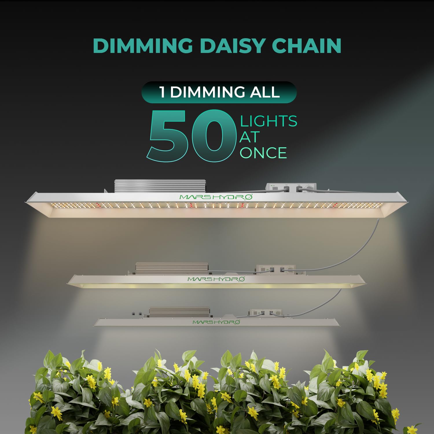 Dimmable and Daisy Chain: With an independent dimming button on the external driver, this growing lamp allows you to adjust the brightness from 0 to 100% according to the specific growth stage of your plants. Additionally, it supports daisy chaining of up to 50 LED lights, seamlessly connected in a chain. The auto-sensing power supply is compatible with 120VAC, 240VAC, and 277VAC, making it suitable for both large-scale setups and personal settings.
