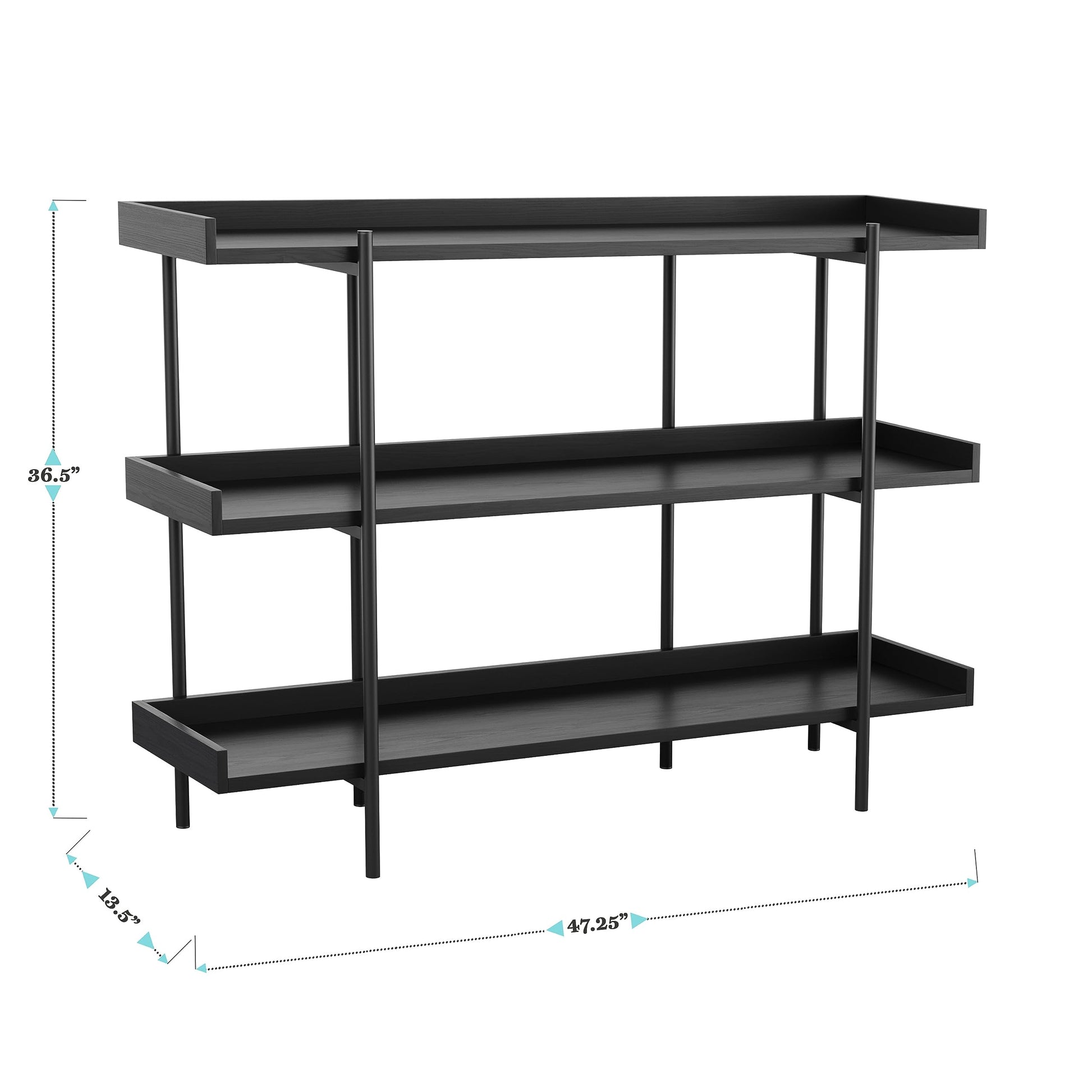 Martha Stewart Emmett 3 Shelf Bookcase with Vertical Metal Frame, Home Office Storage Display Unit, 35" H, Black Wood Grain/Oil Rubbed Bronze