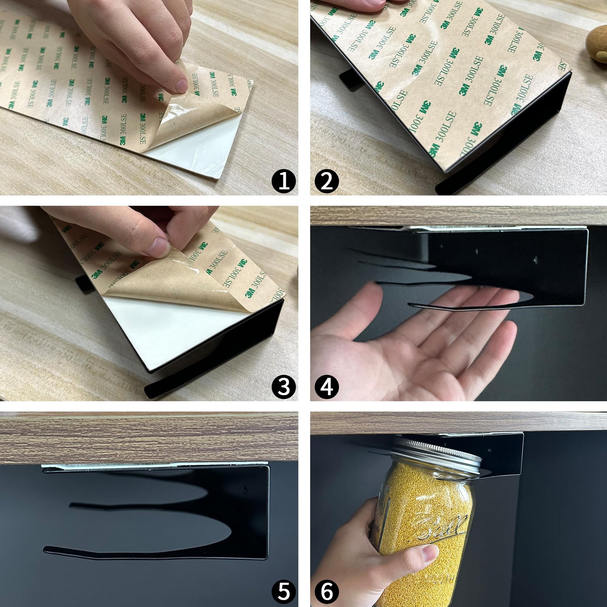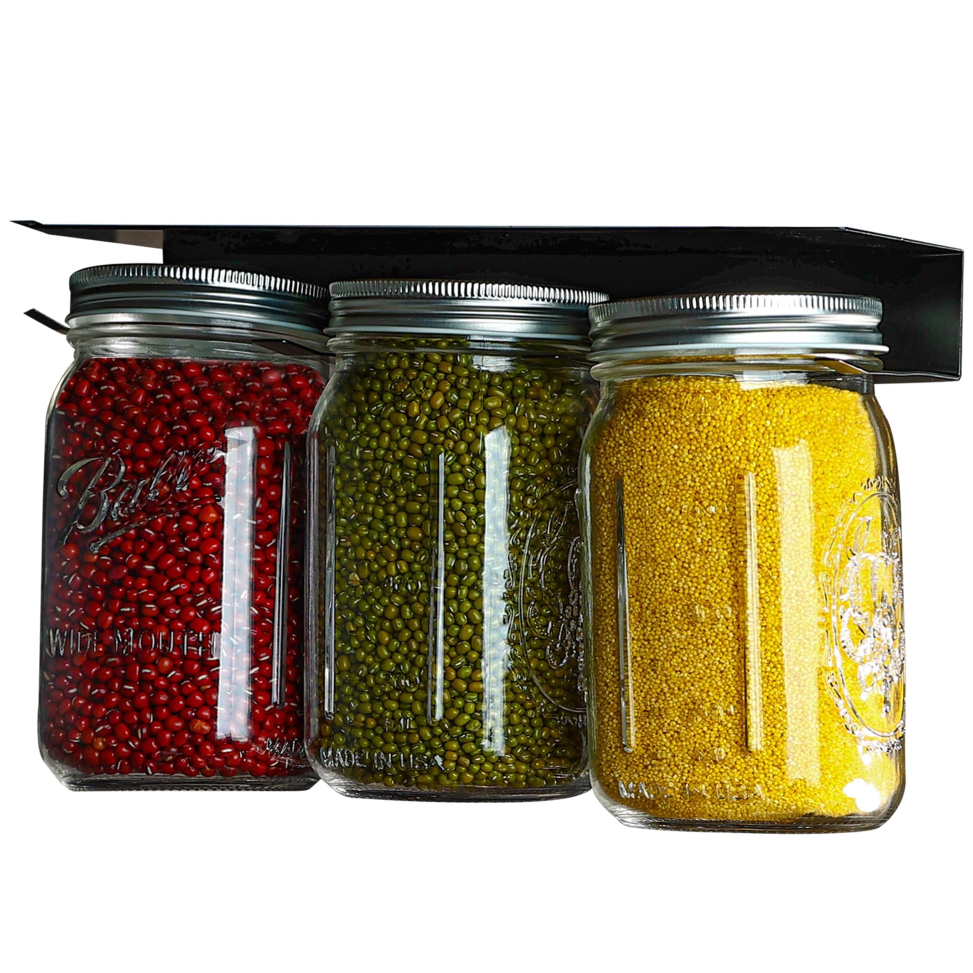 Mason Jar Storage Rack for Under Shelf, 2 Pack Holds 6 Wide Mouth Mason Jars, No Drill or Screw Mount, Kitchen Cabinet & Pantry Space Saver, Easy Access Sliding Design(Wide Mouth)