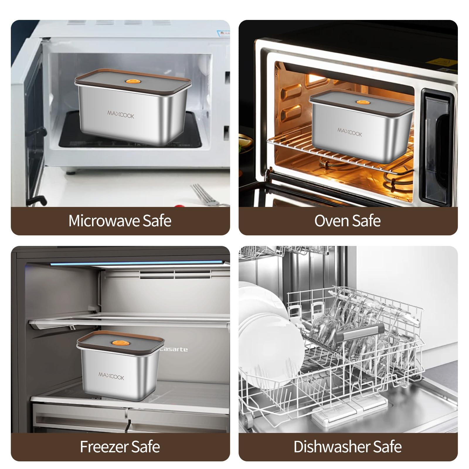 【Stainless Steel Food Container Set】This stainless steel snack containers are made of food grade 304 stainless steel, rust and corrosion resistant, safe and healthy. These metal containers with lid are sturdy and durable, able to be reused, providing you with a reliable and safe food storage solution, replacing fragile plastic containers that are prone to warping and cracking. Note: When heating in the microwave/oven, it is recommended to remove the lid and be careful not to heat for more than 3 minutes