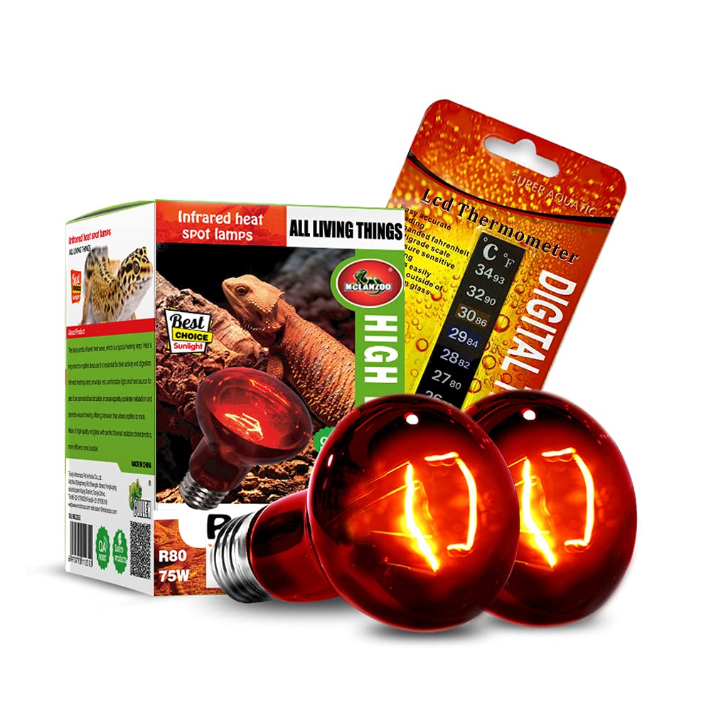 【Infrared Heating Bulb】: This red reptile heat lamp is specially used for reptiles and amphibians. This red infrared heat bulb emits infrared waves, which can increase the overall temperature of the entire aquarium and provide a warm and comfortable habitat for your pet.