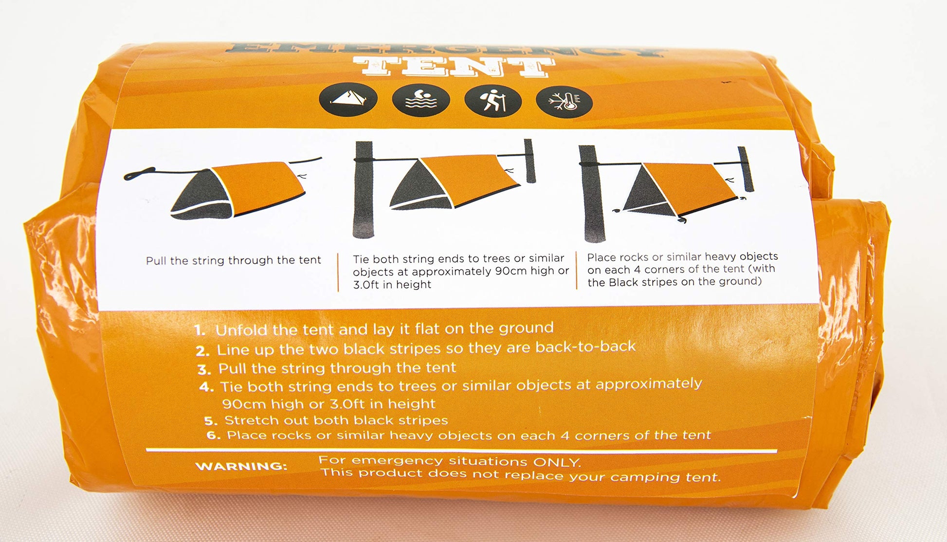 BE PREPARED – Stay warm, dry, and protected with the SOS Emergency Life 2-Person Tent. This emergency tent is designed to be a reliable survival shelter in the toughest conditions. Water- and windproof, it’s lined with thermal mylar to retain up to 90% of your body heat. Keep it handy in your camping gear, bug-out bag, survival kit, car, or off-road vehicle—ready for any situation where warmth and shelter are critical. Highly packable and portable.