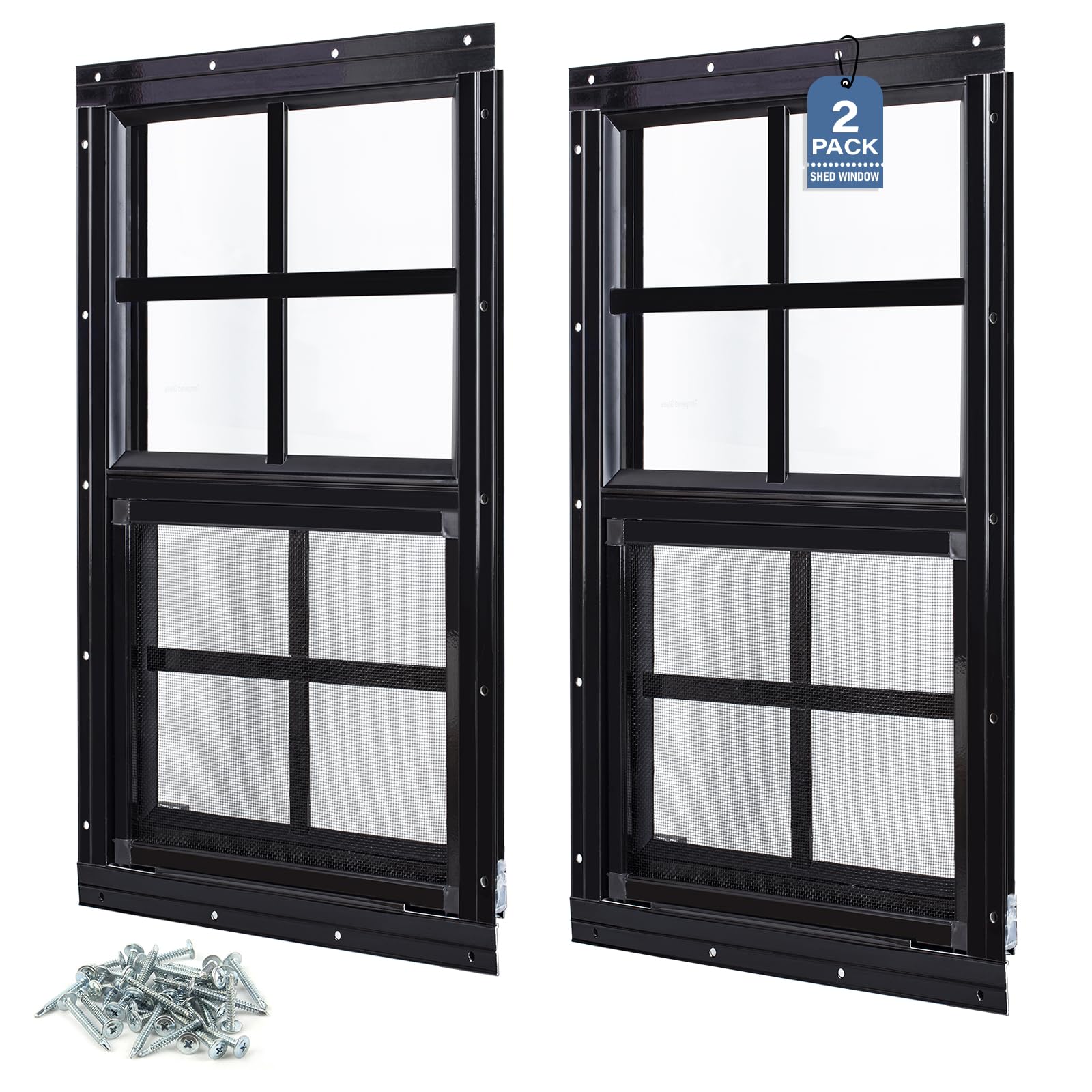 Robust and Durable Construction: Melkus shed window made from high quality heavy duty aluminum alloy ,super sturdy, strong and anti-rust, ensuring you long lifetime use in whatever weather conditions. Package including 2pcs 24''x36'' Shed Windows; 66 pcs screws