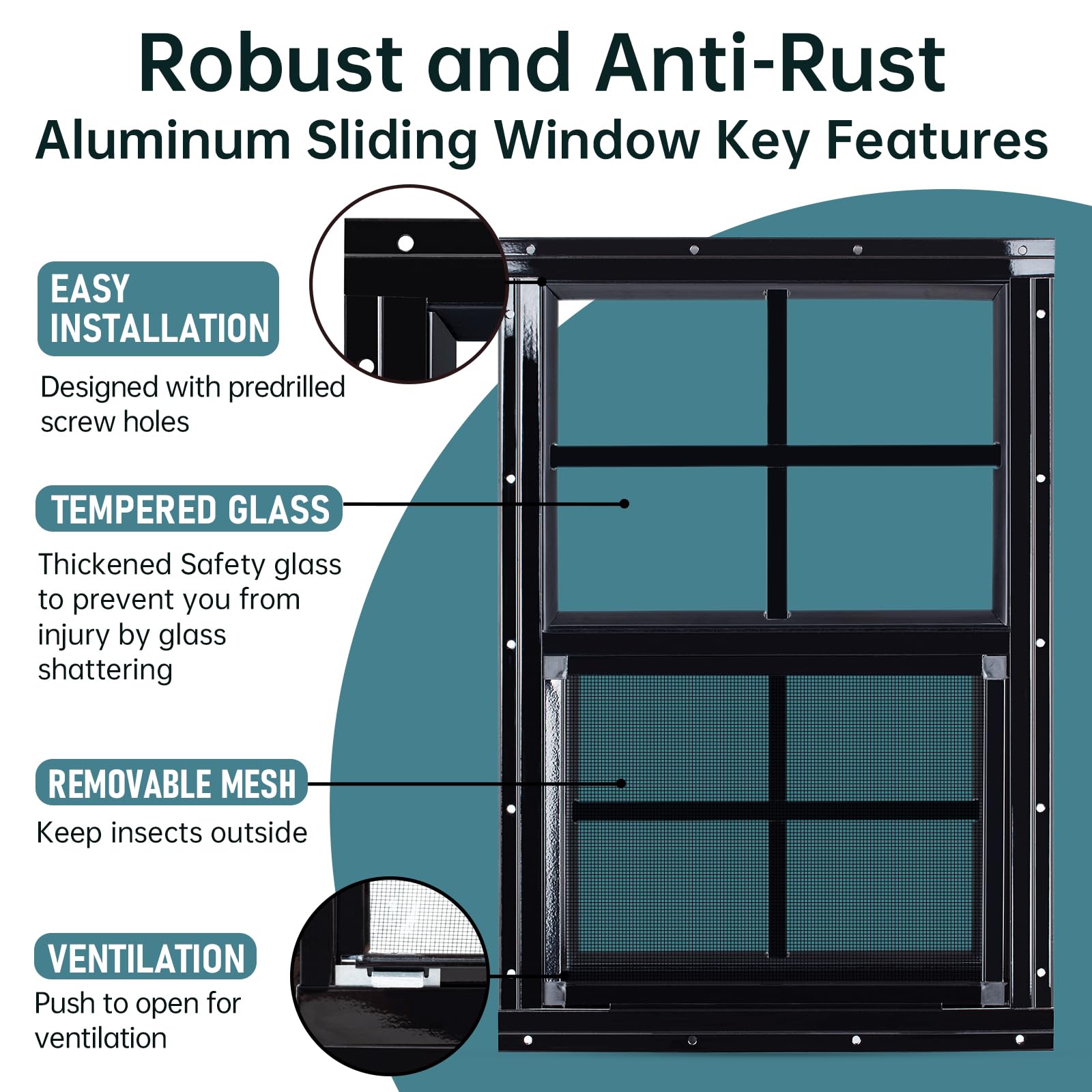 Thicker Tempered Glass with More Safety: Melkus household windows are made of 4mm tempered glass for enhanced durability and safety. It is more stronger and durable glass can withstand impacts without shattering into sharp pieces, minimizing injury risks
