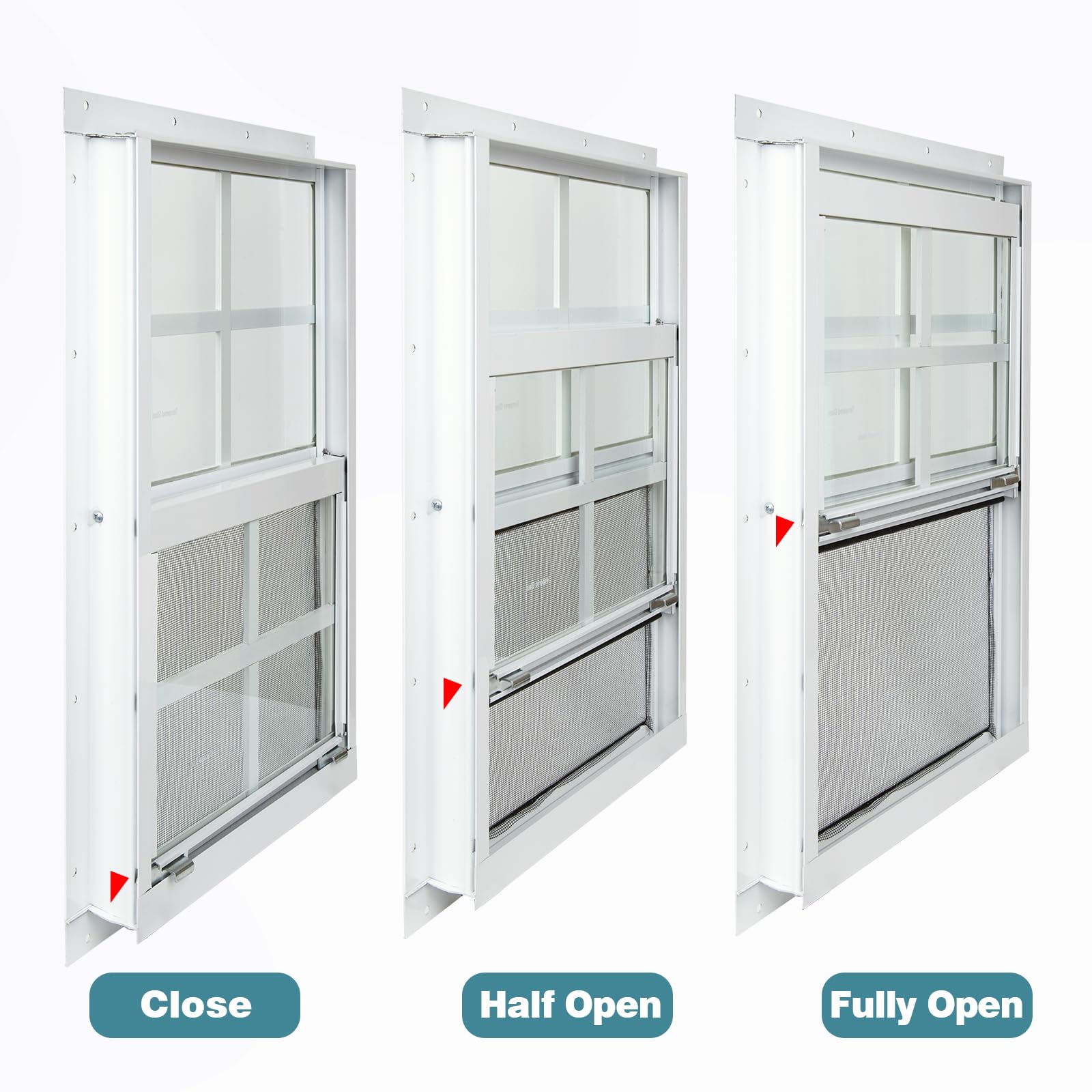Melkus 2 Pack Shed Windows 24''x36'' Flush Mount Chicken Coop Windows with Tempered Glass and Screen, Sliding Windows for Chicken Coop, Shed, Garage, Playhouse, Barn,Greenhouse, White