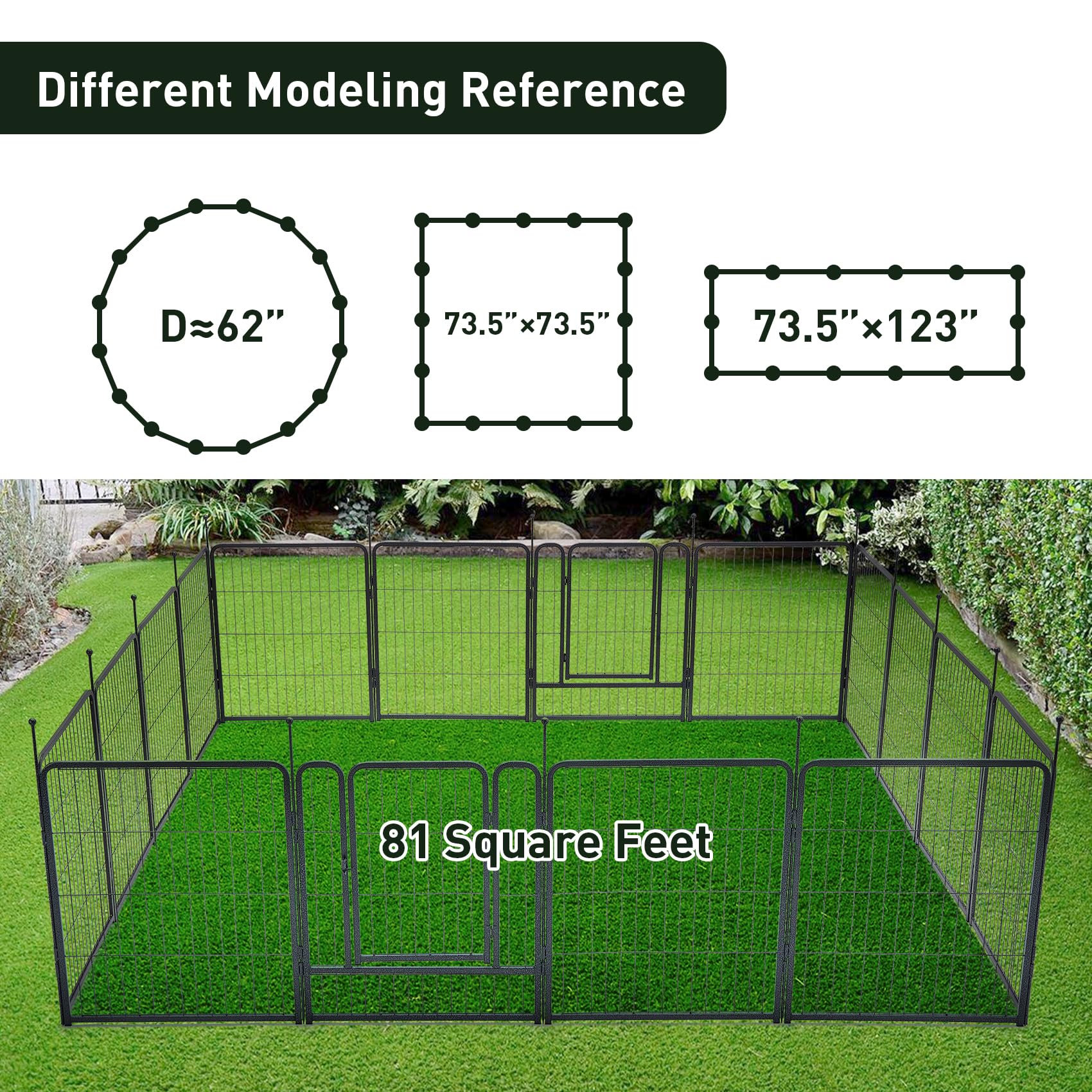 【Spacious Exercises Play Pen】16 panels can be assembled into different shapes about max 81 square feet according to needs and Each fence is 40"height. Any Combination is suitable for outdoor or indoor space.
