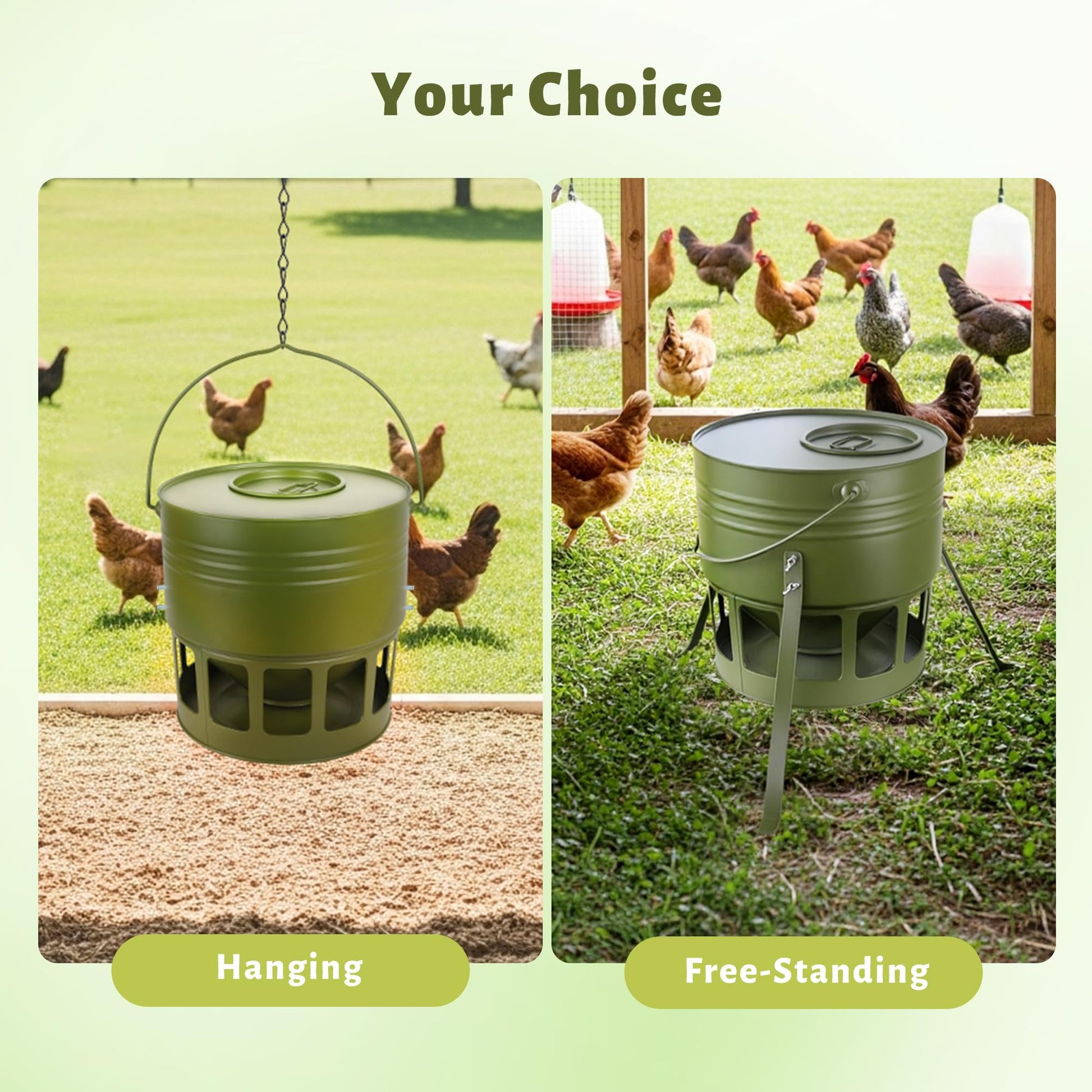 Premium Construction & Aesthetic Appeal: Crafted with professional molds and textured top accents, this feeder combines rugged durability (5mm leg thickness) with a stylish avocado green finish to complement any coop or backyard setup.