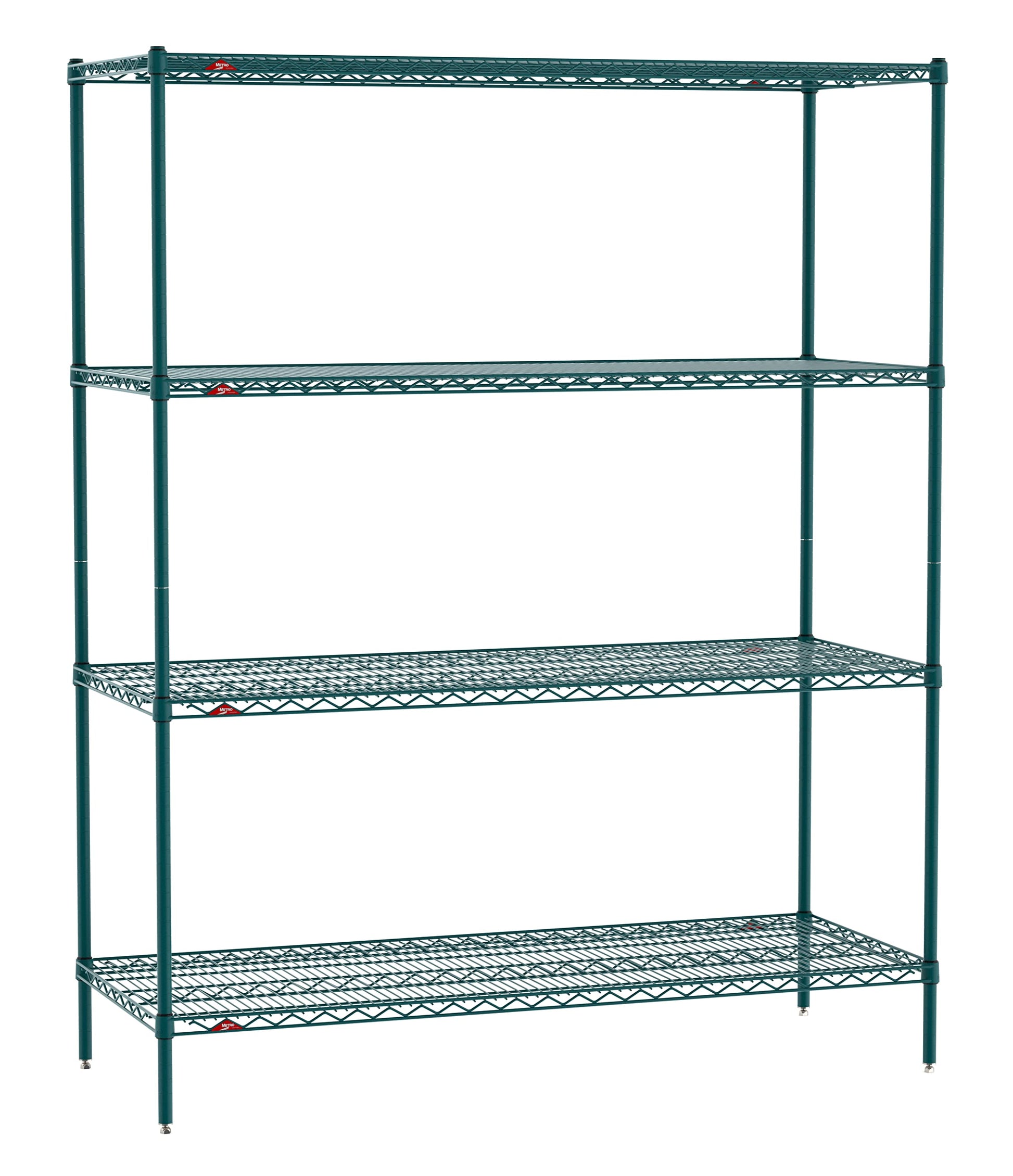 METRO Super Erecta Metroseal Green Epoxy Shelving Unit - Industrial Wire Shelving for Restaurants, Kitchens, Walk-in Coolers/Freezers with Microban - 4 Tier, 2000 lbs Capacity, 24” W x 60” L x 74” H