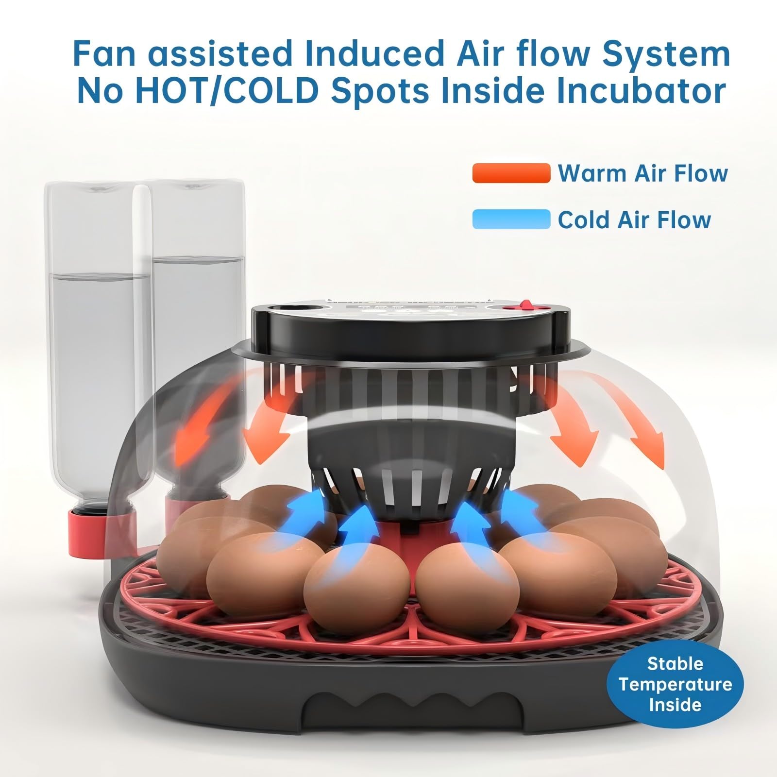 🐣【Automatic Egg Turner】Our incubator is equipped with an automatic egg turner that replicates the natural behavior of a hen carefully rotating its eggs, promoting the healthy development of your fertilized eggs. Remember to remove the turntable in the last 3 days to stop spinning the eggs.(Note: Automatic egg turning every 2 hours The red tray needs to be removed two days before the eggs are about to hatch to avoid rolling and injuring the chicks.)