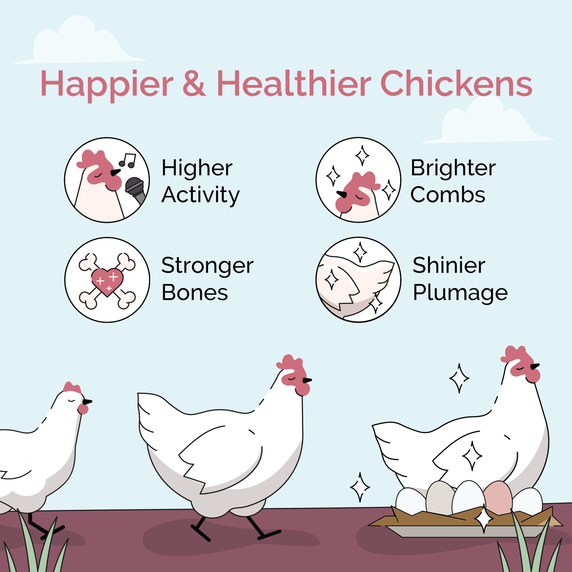 HEALTHIER FOR LAYING CHICKENS: Strengthen bones (reduce bone break & damage), bolster blood vessels, boost immune systems, improve cardiovascular function & reduce egg breaking with oyster shell
