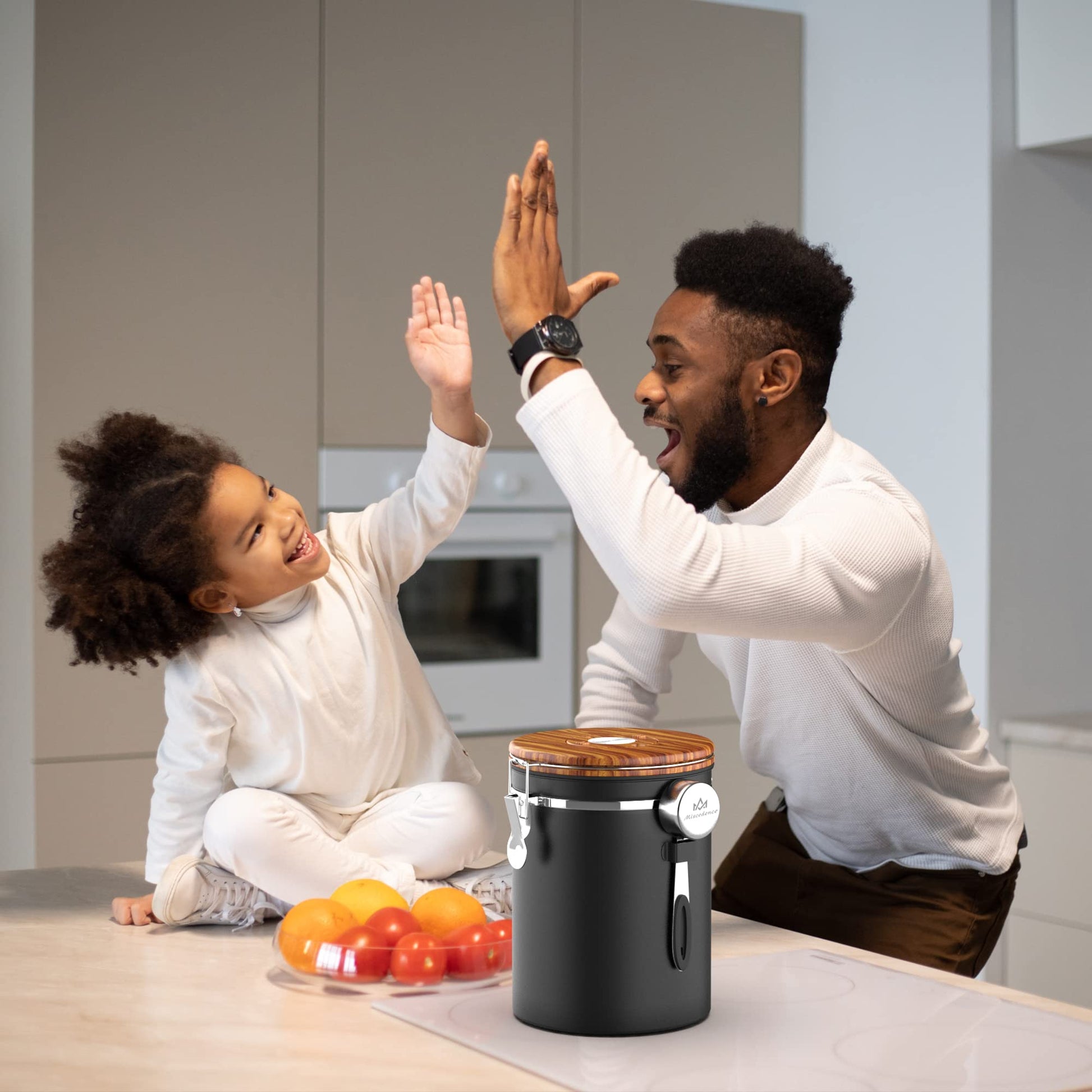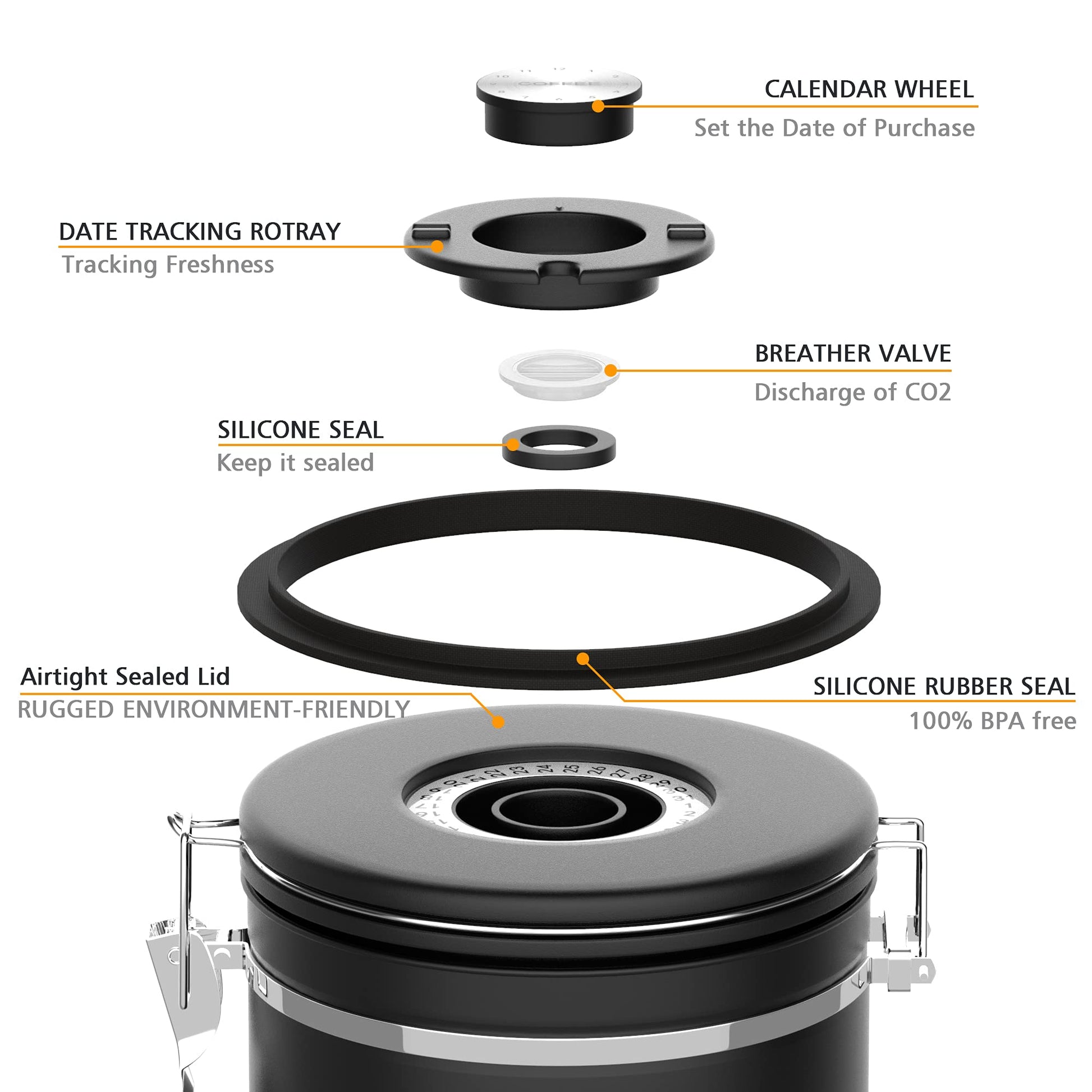 【35 OZ Large Capacity】 The largest on the market is only 22OZ, and our coffee canister has a 35OZ capacity that can hold 2.2 pounds of coffee beans. He is the perfect complement to the coffee lover's kitchen.