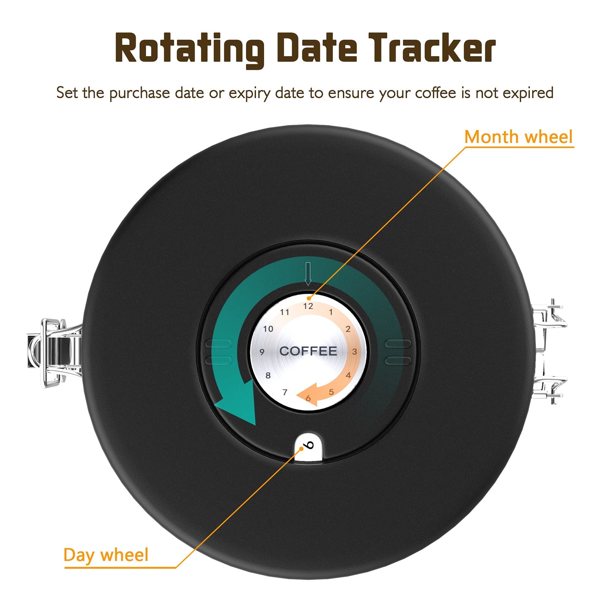 【 Date tracking and airtightness 】 The coffee canister is designed with a lock, and the wood grain colored lid is equipped with a silicone gasket. The top of the lid has a date tracking wheel. You can set the shelf life when loading coffee, and the next time you open it, you will know how long it will be stored.