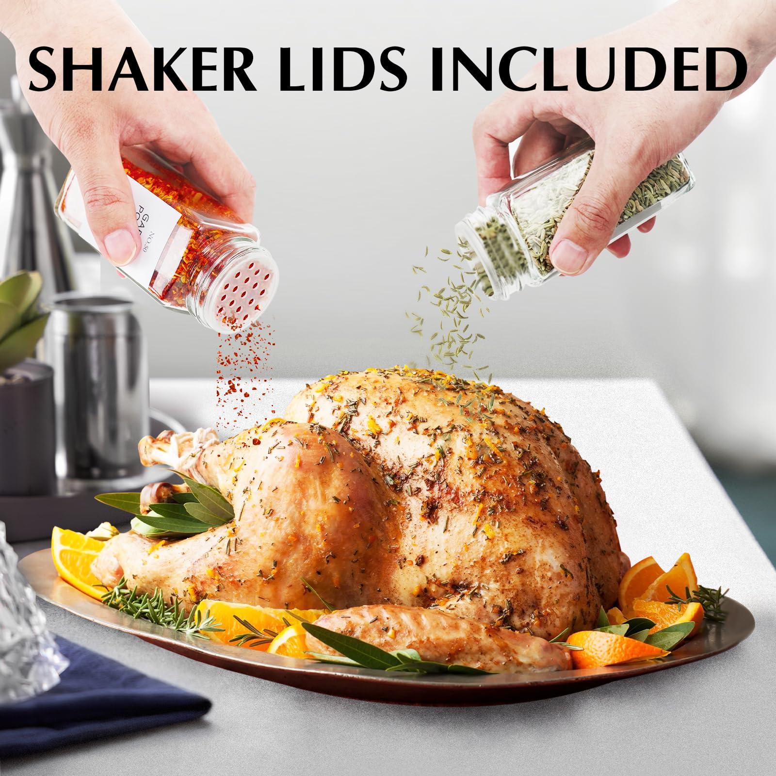 🧂【Durable Food-Grade Glass Spice Jars】 Our seasoning jars are made of BPA-free, toxic-free and lead-free glass, which ensures the food-grade quality. With durable clear glass for high visibility & long time use.