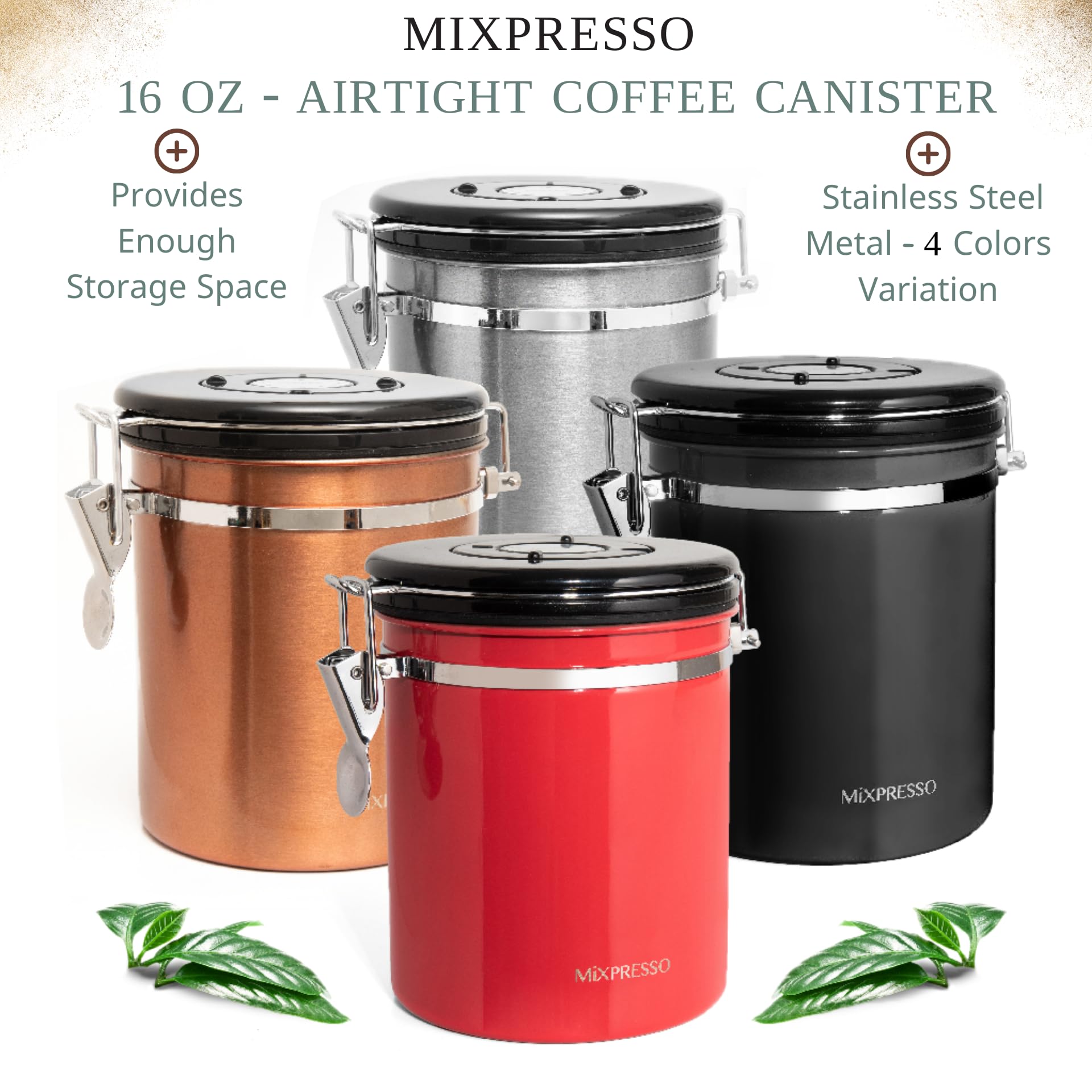 Mixpresso 16 Oz Black Coffee Canister, Stainless Steel Airtight Coffee Container, Air tight Jar Tea Storage with Date Tracker, Vacuum Sealed Espresso Airtight Canister, Sugar Container for Home