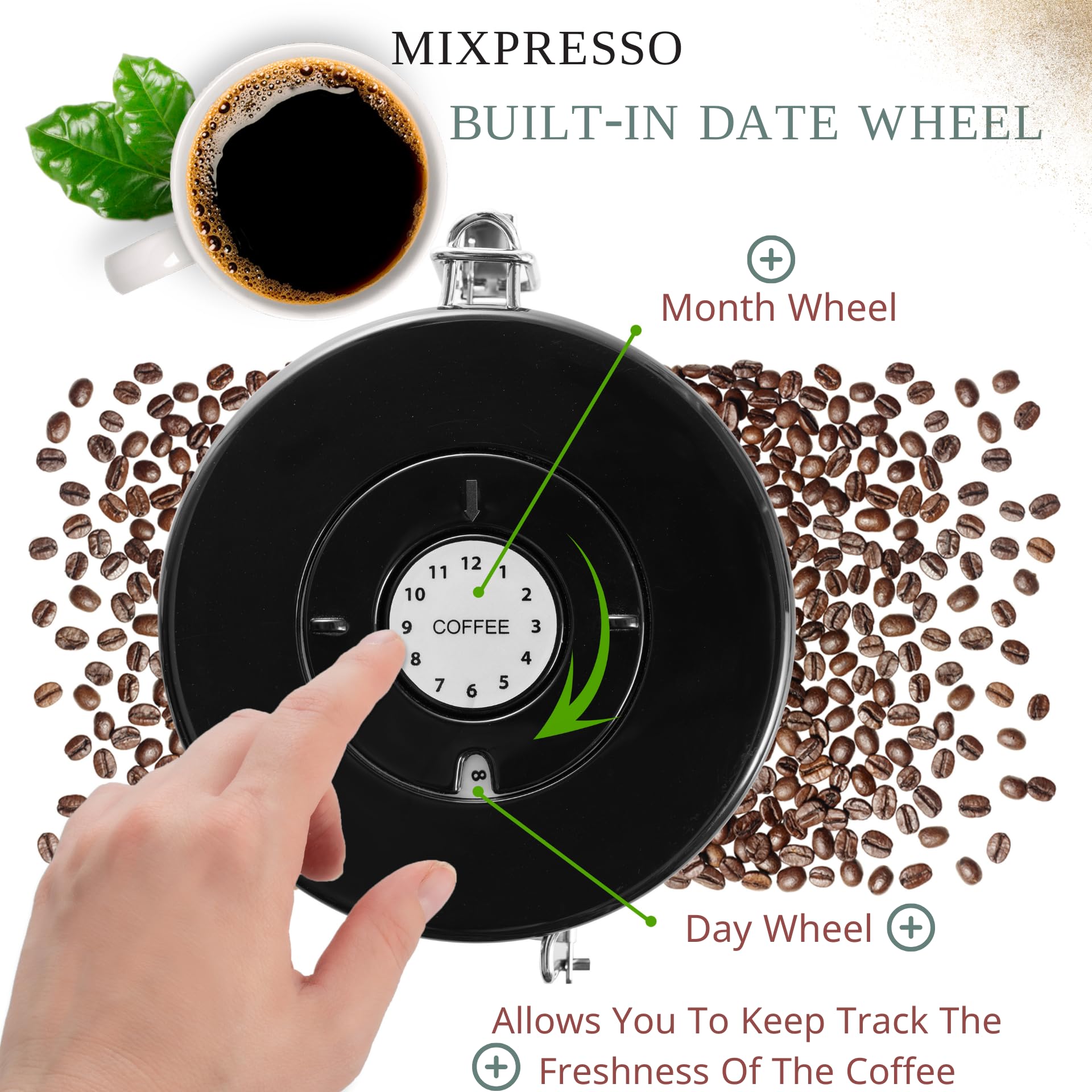 Coffee Jar with Date Tracker: This black coffee bean storage includes a built-in day/month dial to monitor freshness. Great for ground coffee, tea leaves, and dry goods with ample space.