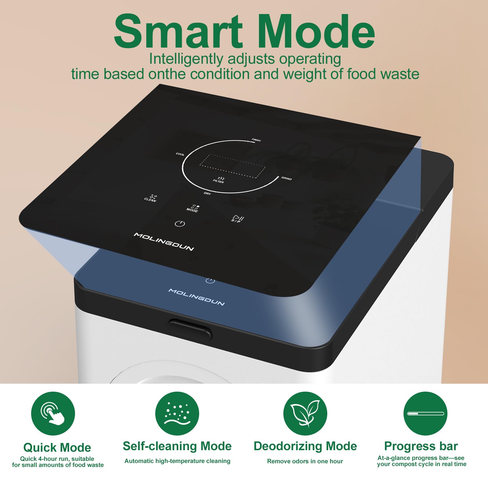 MOLINGDUN 3L Electric Composter for Kitchen, Countertop Compost bin, One Touch Smart Model Handle Kitchen Waste, with Triple Grinding Blade, Carbon Filter, Auto-Cleaning, LED Touch Screen
