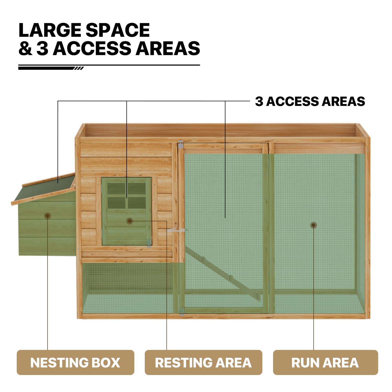 Large Nesting Box - This deluxe chicken coop comes with a built-in nesting box, easy to collect eggs. Box with lockable latches design. The asphalt proof cover prevent water penetration.