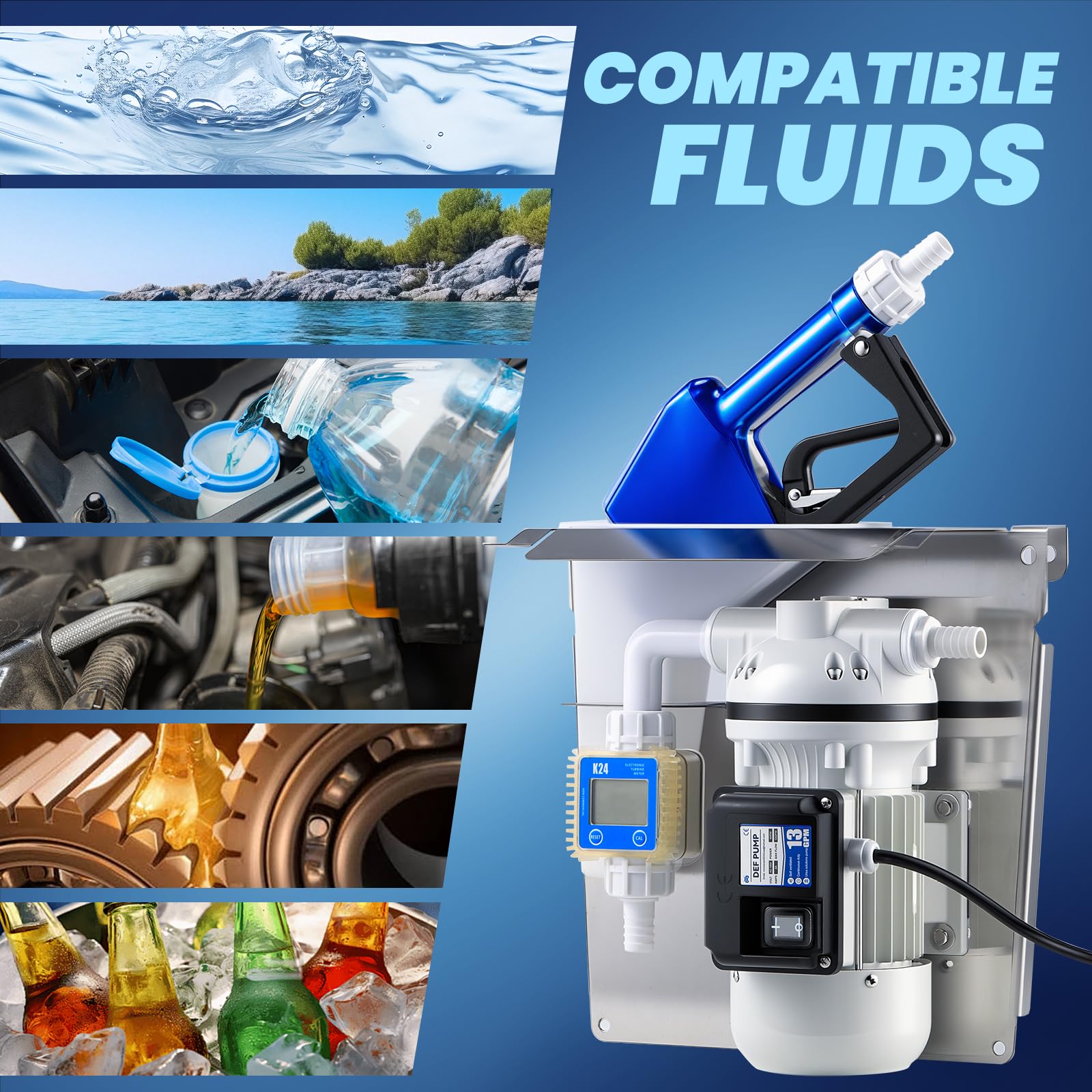 [Complete Kit for Immediate Use] DEF transfer pump kit includes EPDM hoses (6.56ft*1, 13.12ft*1), a DEF nozzle, and flow meter, providing everything needed for immediate use. All components are compatible and designed to work together for efficient, reliable diesel exhaust fluid transfer.