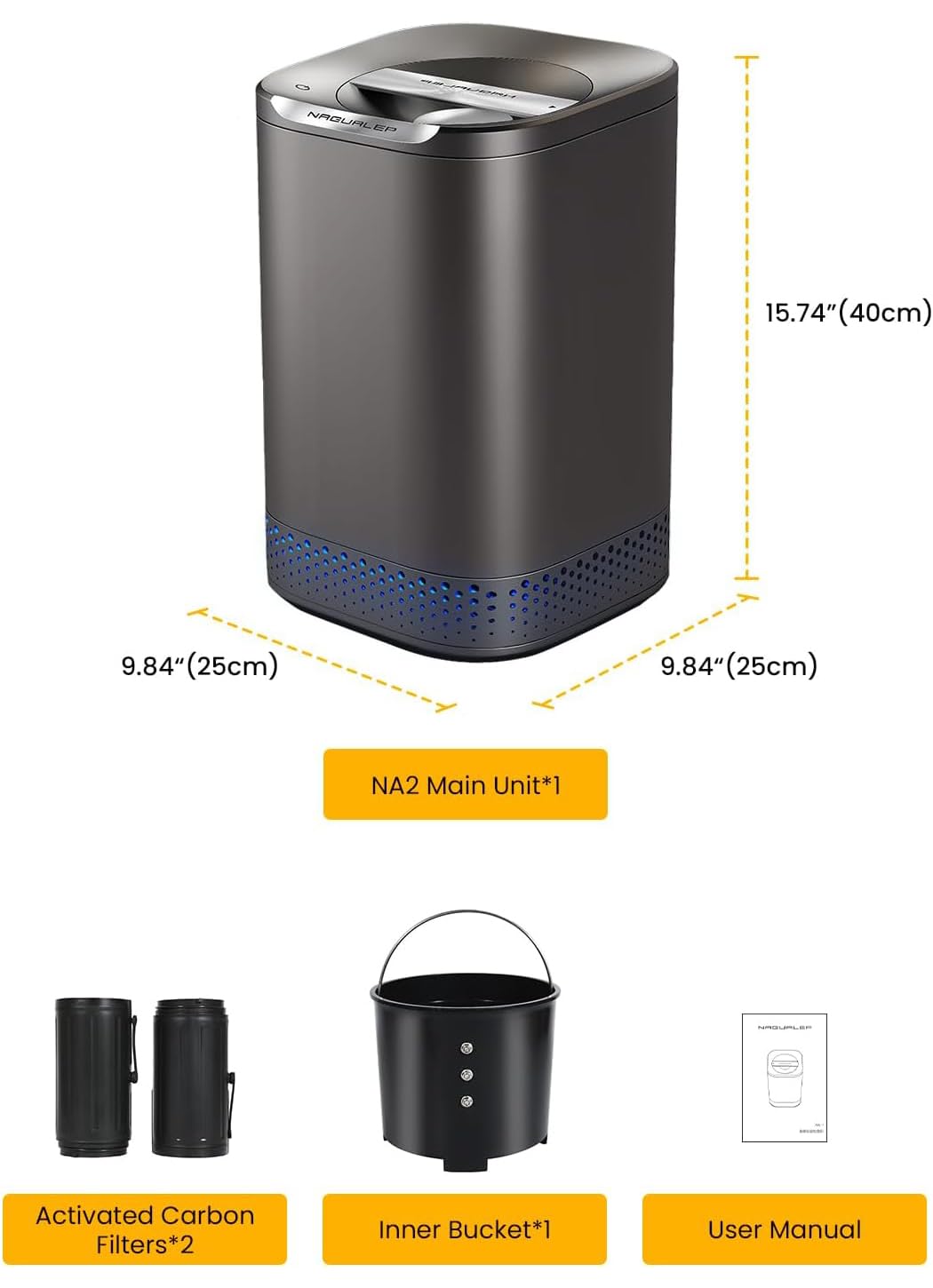 đșăOdorless with Dual Carbon FiltersăOur kitchen odorless composter equipped with two high-efficiency activated carbon filters (iodine value 1000+), our kitchen composter removes up to 80% of food odors. Ideal for indoor or countertop useâno more unpleasant smells in your kitchen!