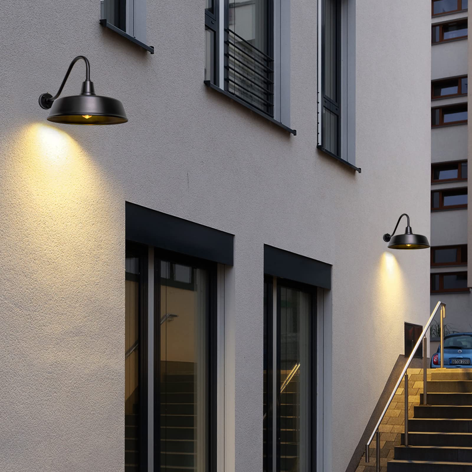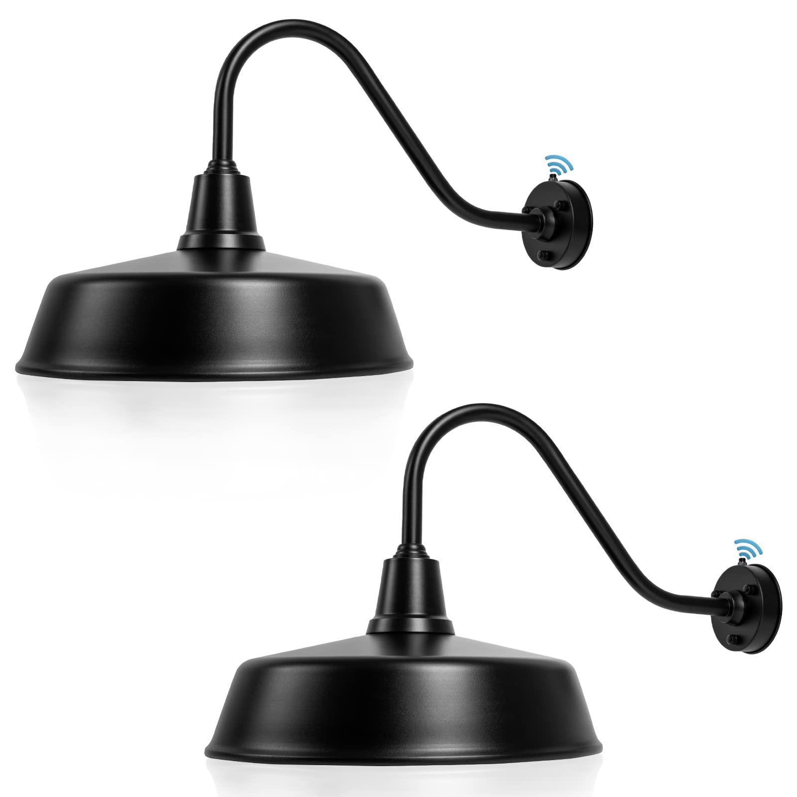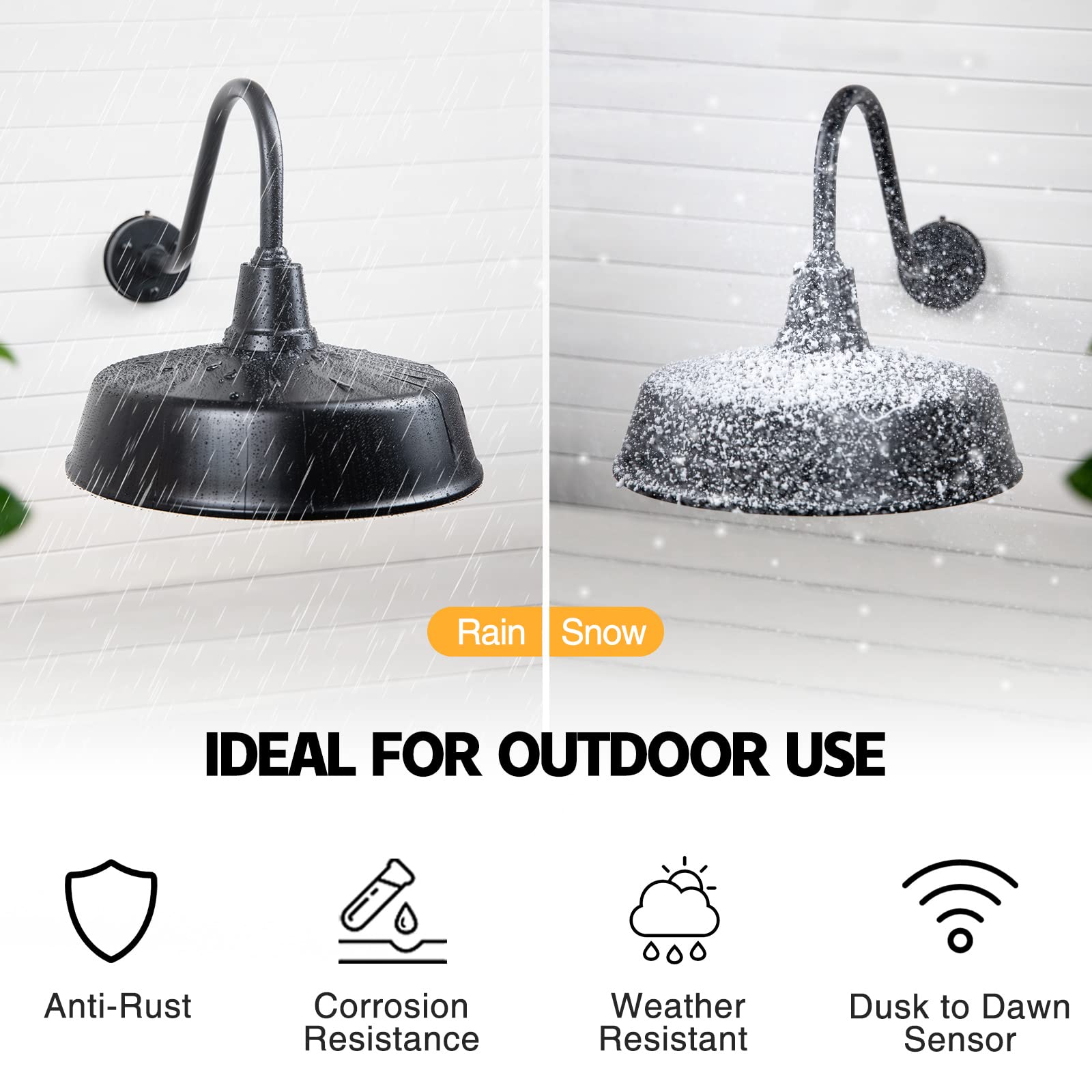 Naurham 24 inch Barn Lights Outdoor Gooseneck Lighting, Dusk to Dawn Black Exterior Barn Lights, Farmhouse Wall Lighting Fixtures with Sensor for Porch Garage (2, 24" Diameter)