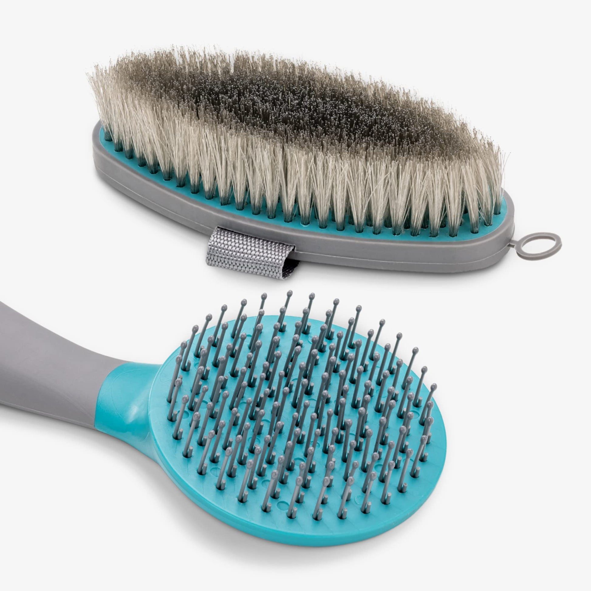 GROOMING BRUSHES: Keep your horse's hair and main looking silky smooth with this brush grooming set. You receive one brush for the body and one brush for your horse's mane and tail for all over grooming and a healthy coat.