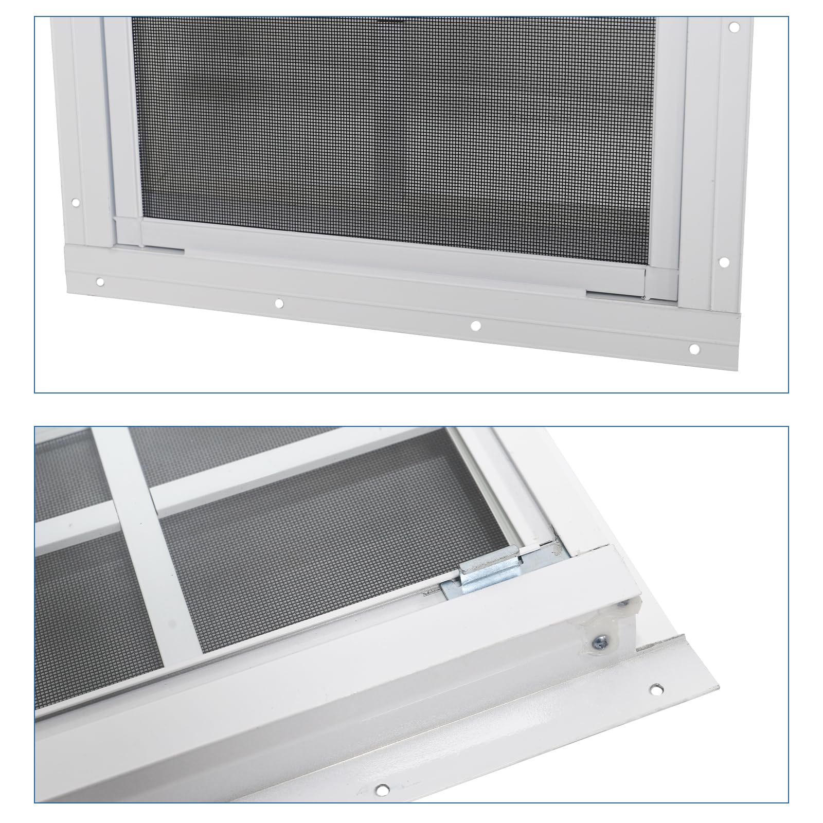 【Heavy Duty Upgraded Shed Windows】Solid structure and thick aluminum, high strength tempered glass and 304 Stainless Steel Wire Mesh, making it durable under all weather conditions. This upgraded version features a stainless steel wire mesh, which lasts significantly longer than other polyester or fiberglass meshes. Plus, it's highly durable and rust-resistant.