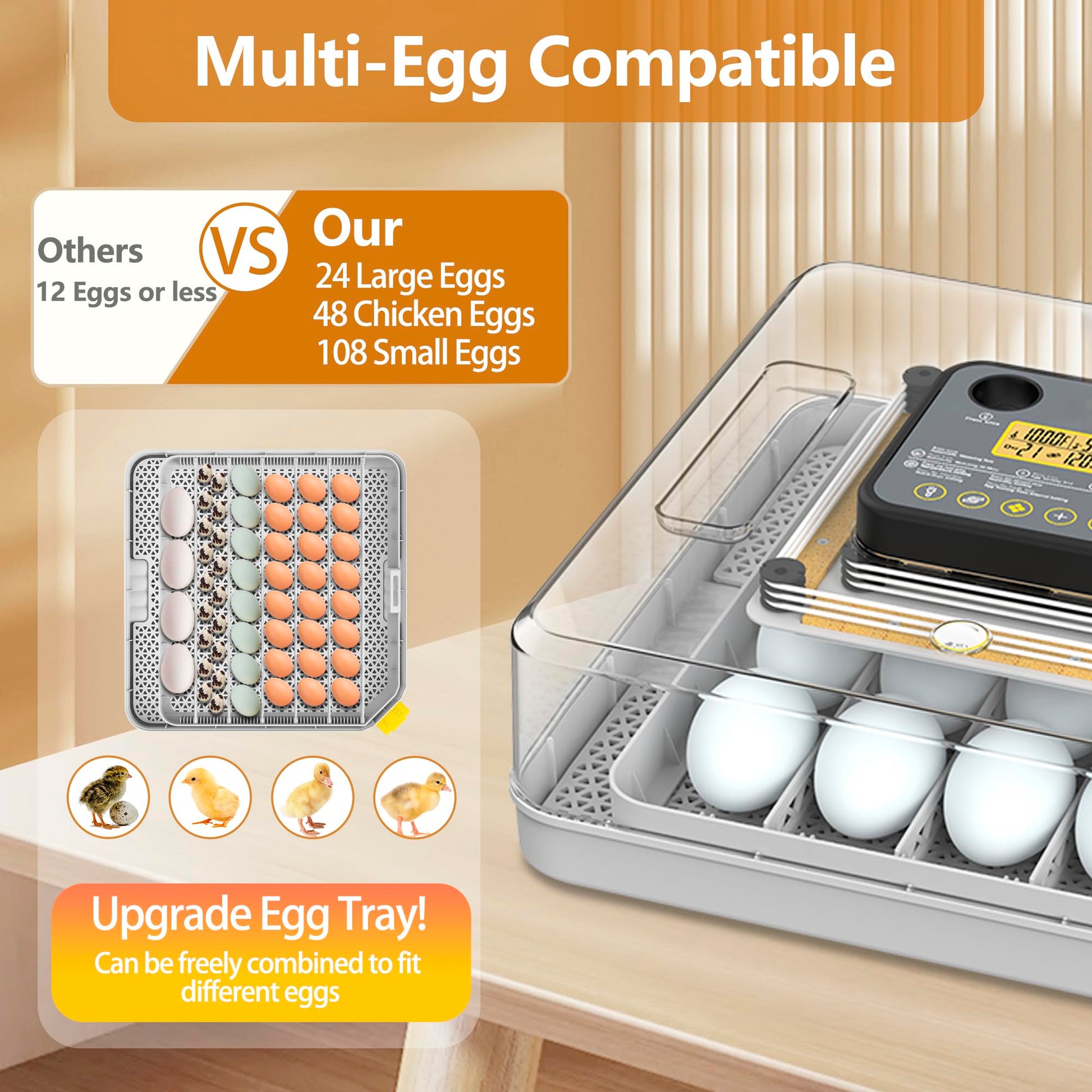 【Multi-Egg Compatible For More Application Scenarios】 New upgrade egg tray can be freely combined to fit different eggs, so it can be a chicken incubator or bird egg incubator , or other egg hatching incubator