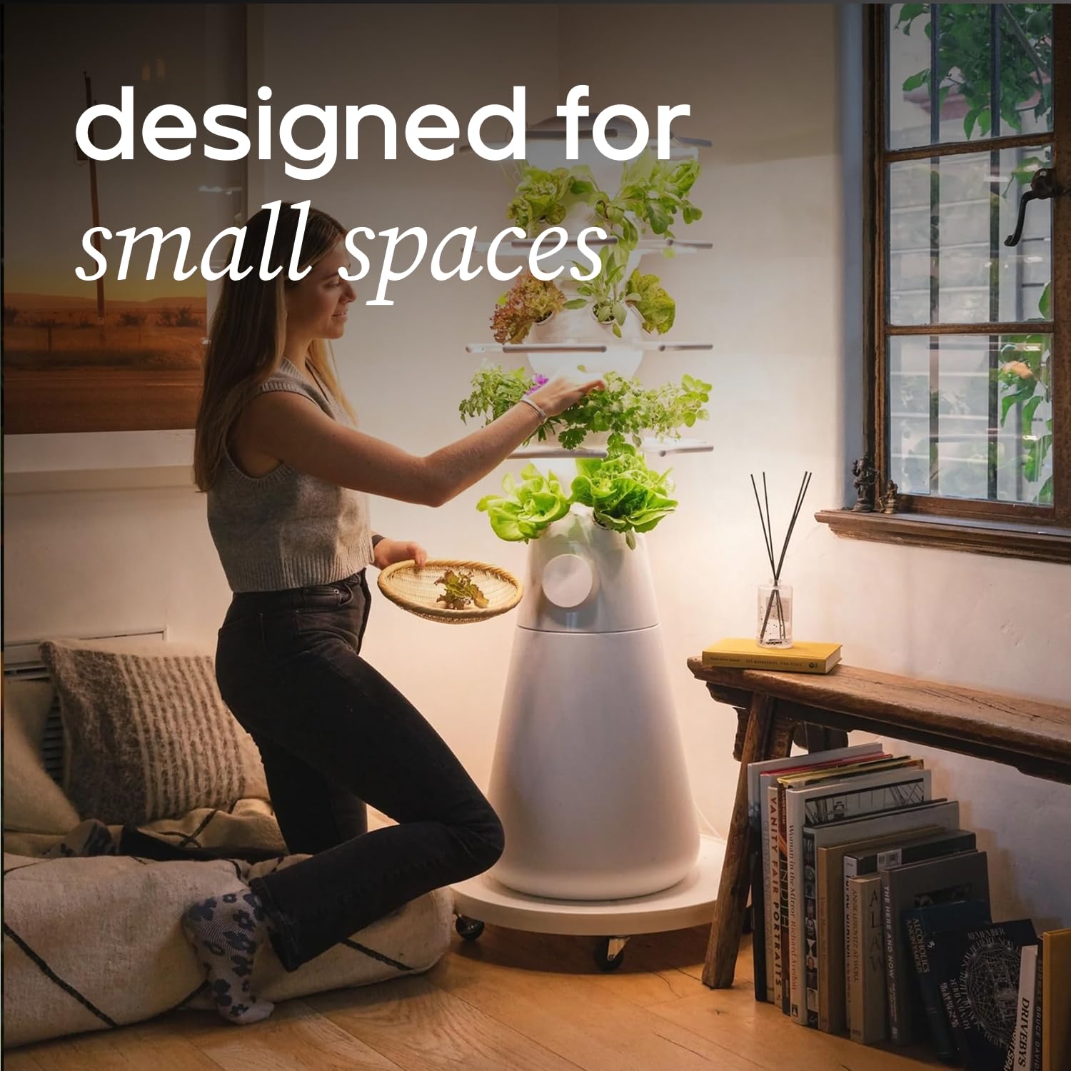 Fresh food in any home: Compact design with built-in LED grow lights makes it easy to grow indoors, even in small kitchens or apartments.