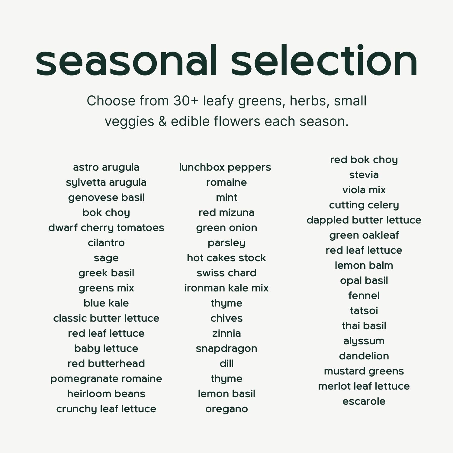 Choose your plants: Comes with 20 live seedlings to start your harvest. Varieties are selected from a range of options and shipped separately from Lettuce Grow farms.