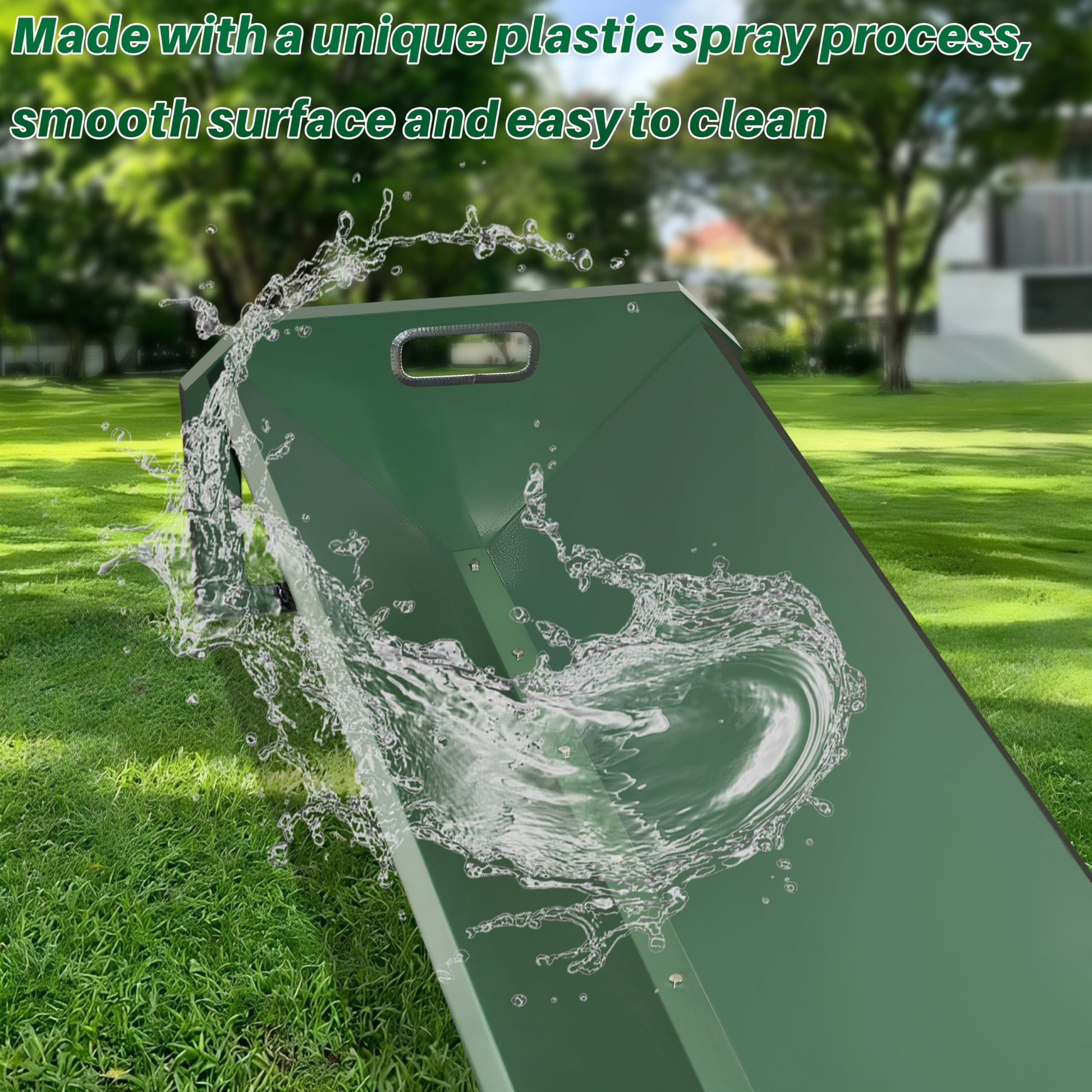 Practical Design: The V-shaped bottom effectively prevents livestock from knocking over the trough during feeding. Our sheep feed trough is equipped with a comfortable handle that allows you to move it easily and protects your hands from getting hurt.