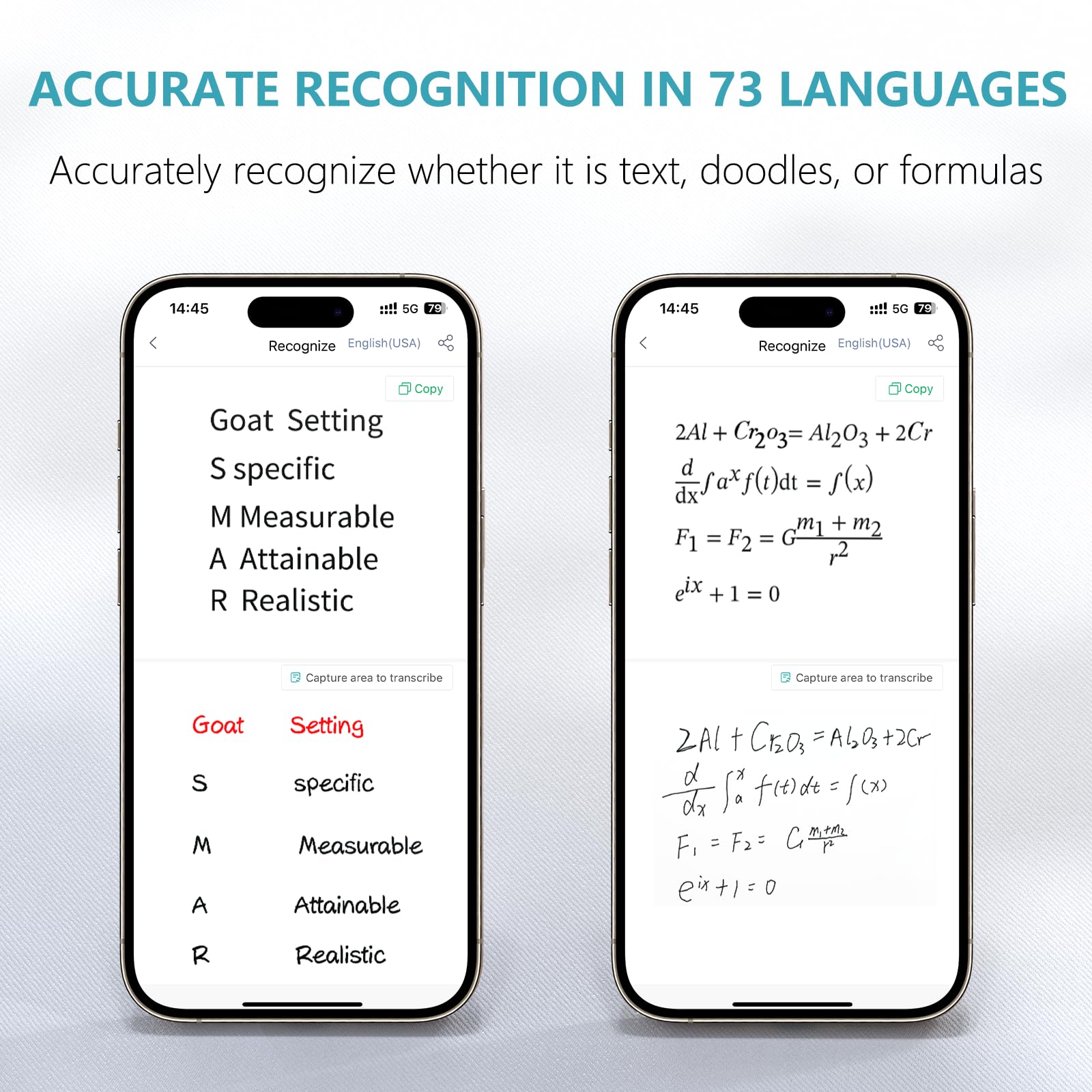 Accurate Recognition in 73 Languages: NEWYES SyncPen is equipped with powerful multilingual recognition technology, supporting up to 73 languages for accurate transcription and recognition. Whether it's English, Chinese, German, French, or other languages, SyncPen ensures efficient and precise text recognition, helping you break language barriers and capture every word perfectly