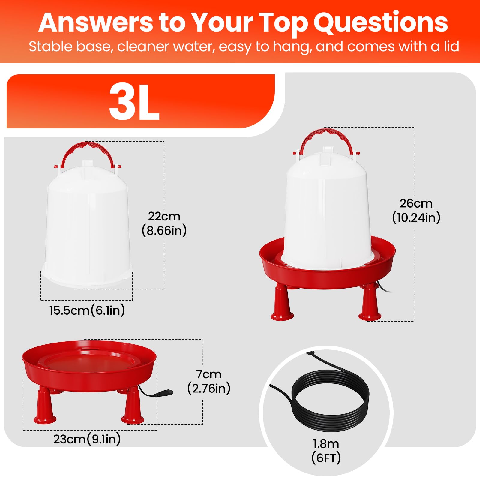 Keeps Water from Freezing – Built-in heater ensures a steady supply of liquid water even in subzero temperatures, perfect for harsh winters.