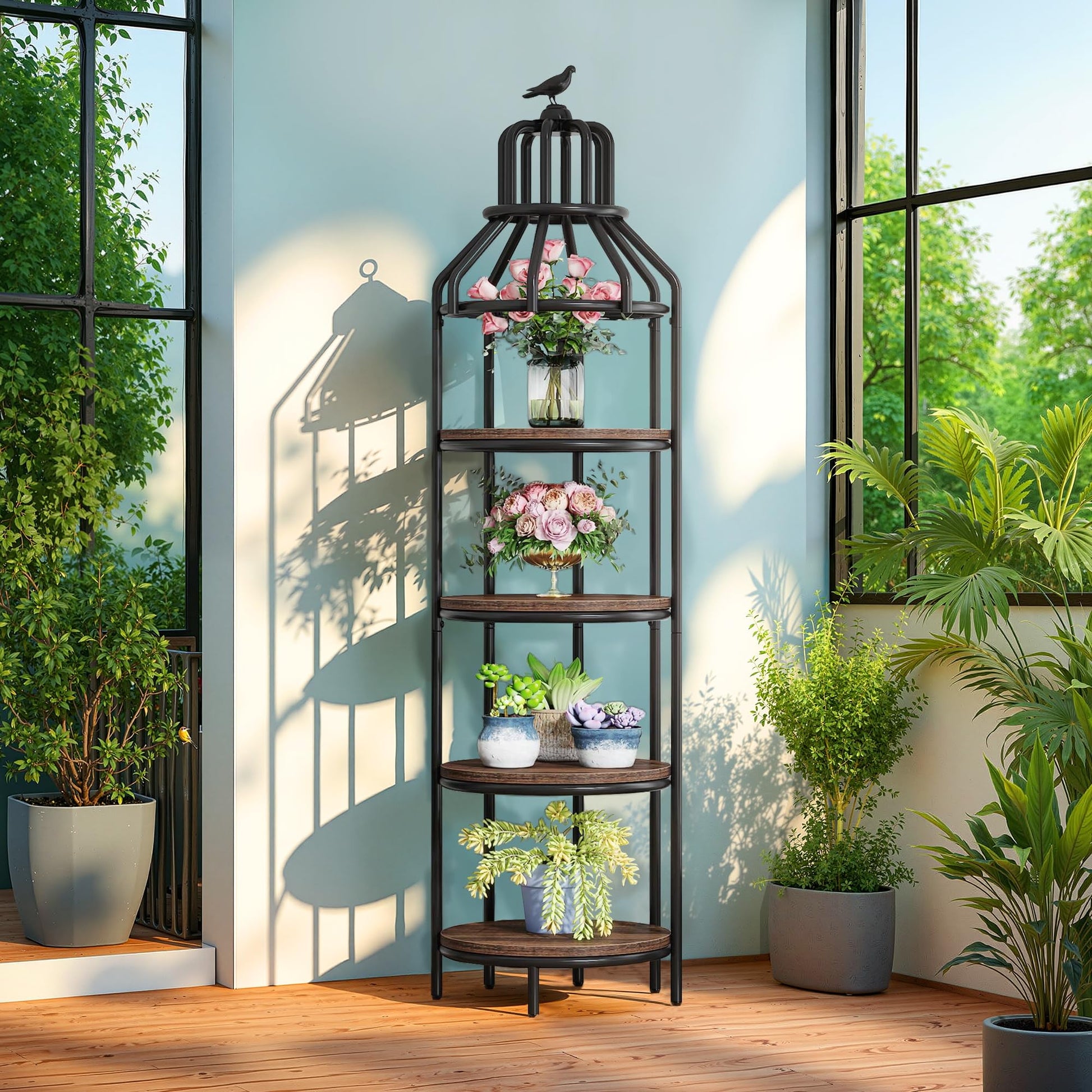 NicBex 70.86" Narrow Bookcase Bookcase with Bird Cage Design,4-Tier Bookshelf Storage Organizer,Metal Plant Stand for Bedroom, Living Room, Office, Brown & Black