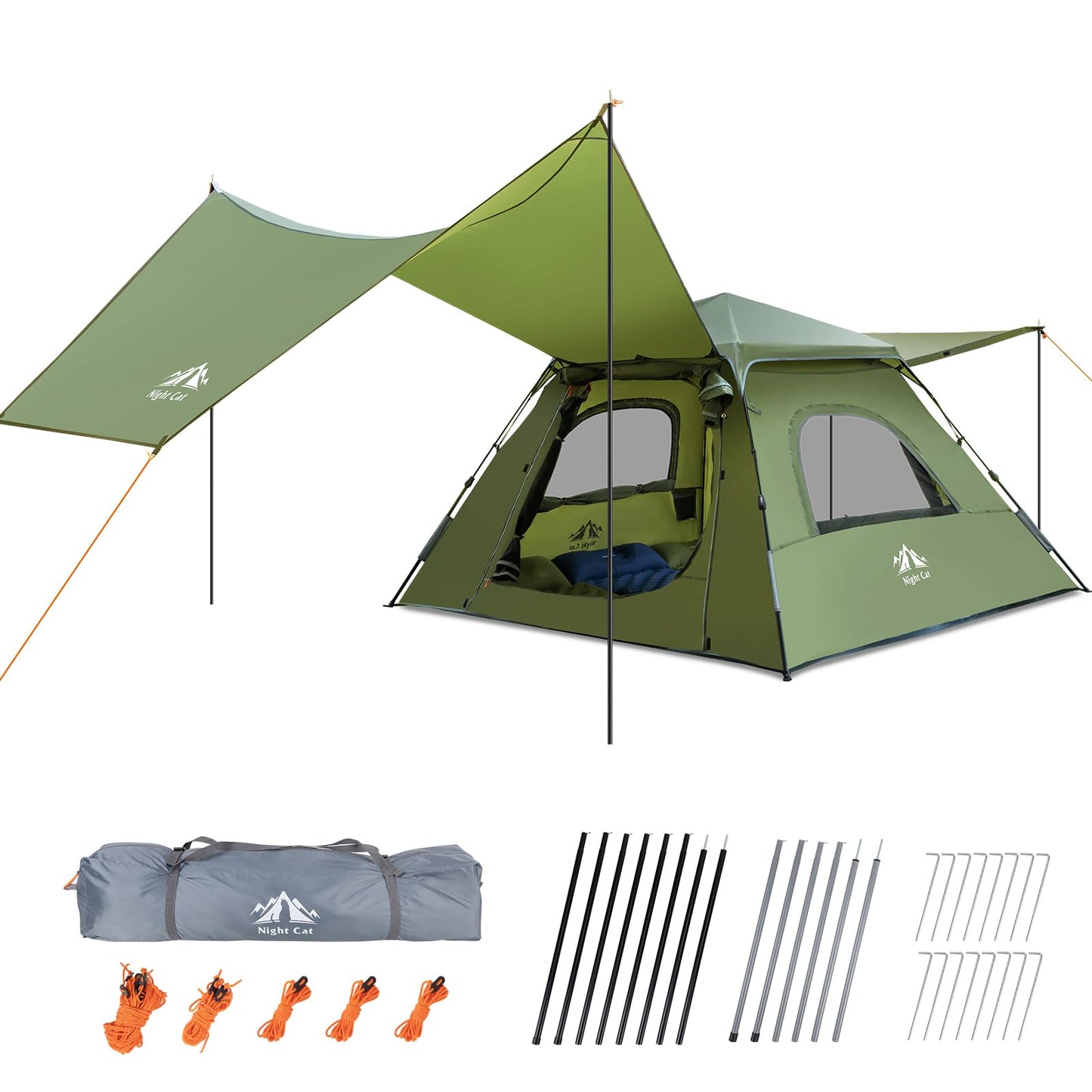 Night Cat Instant Cabin Tent with Canopy Tarp 3 Persons Waterproof Pop Up Tent for Family Camping 2 in 1 Canopy Tent with Porch Automatic Easy Set Up Outdoor