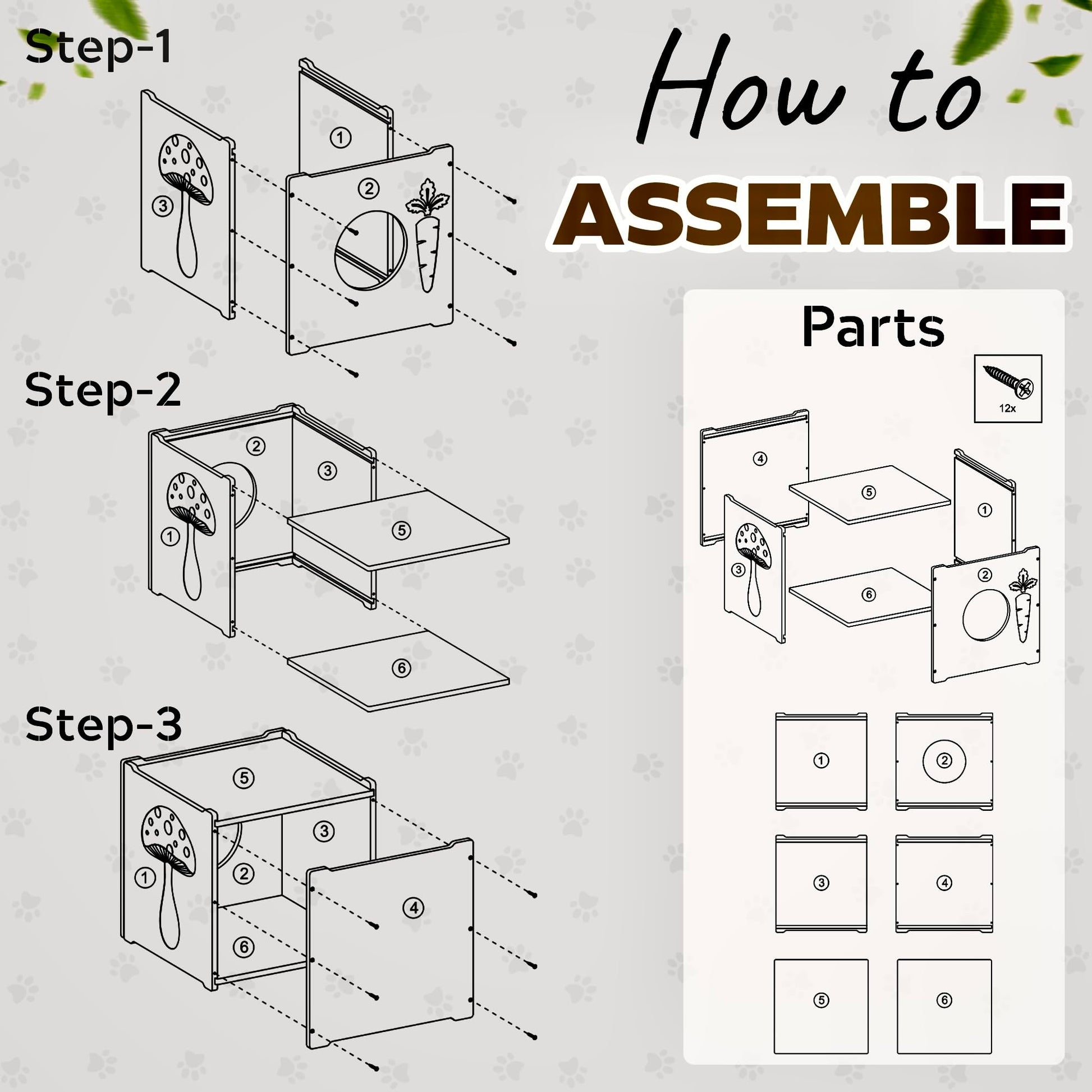 EASY TO ASSEMBLE, HARD TO BEAT Includes screws, screwdriver, and a step-by-step guide. This rabbit house assembles in minutes — no tools, no fuss, just happy pets. A cozy rabbit hideaway and practical bunny enclosure in one.