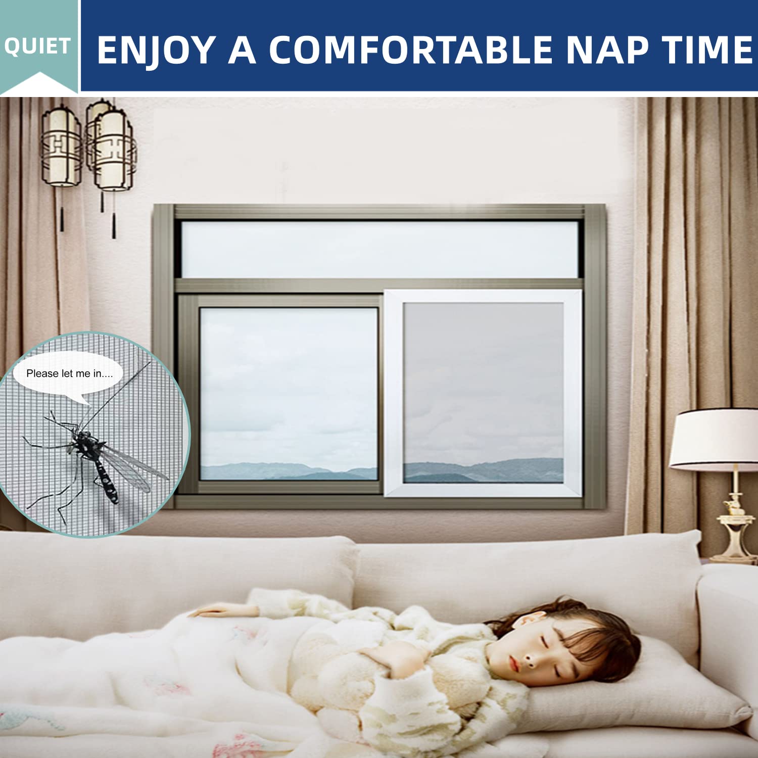 Easy to Clean: Just wipe with a damp cloth or a vacuum cleaner to remove dust in regularly use. For deeper cleaning, youjust simply remove the window mesh from the window, and rinse it well before attaching it back to the window to air dry!