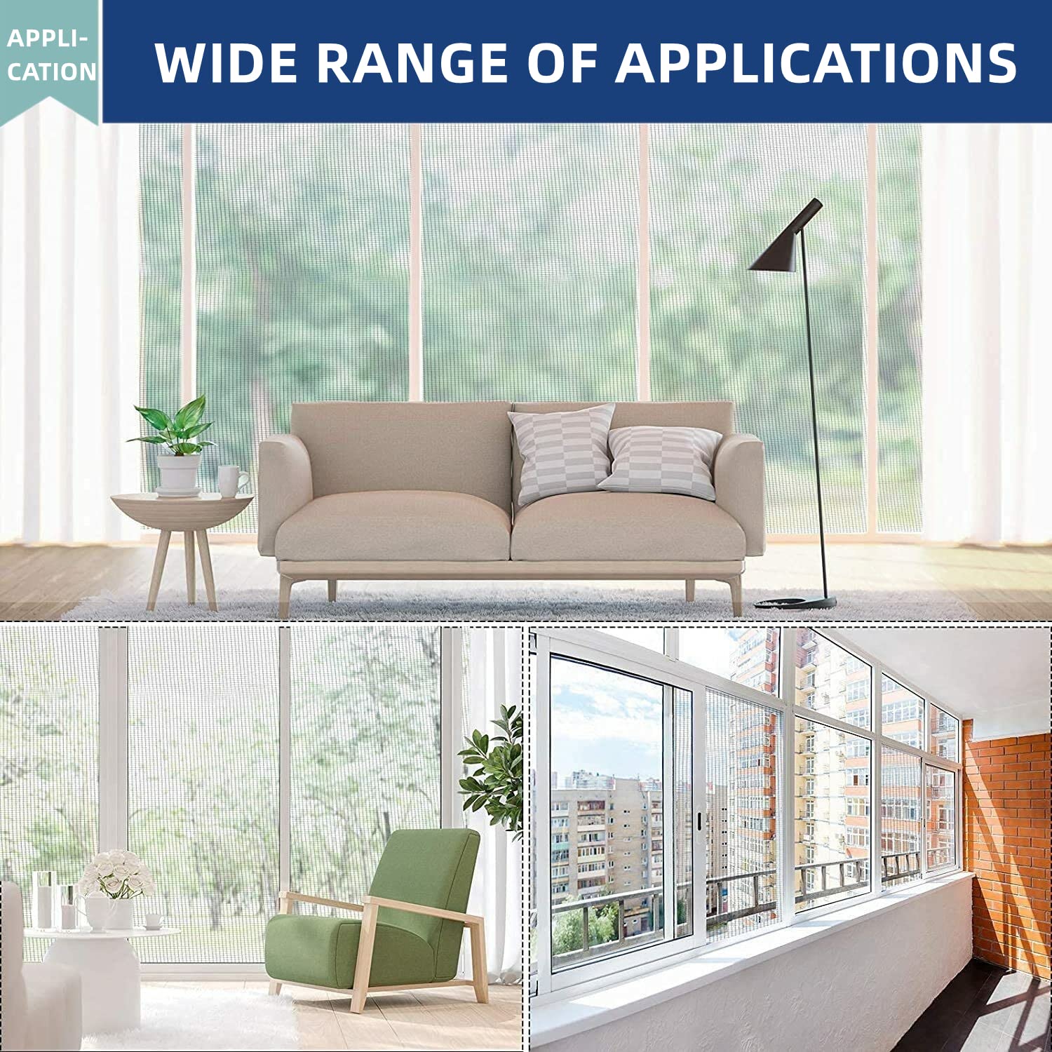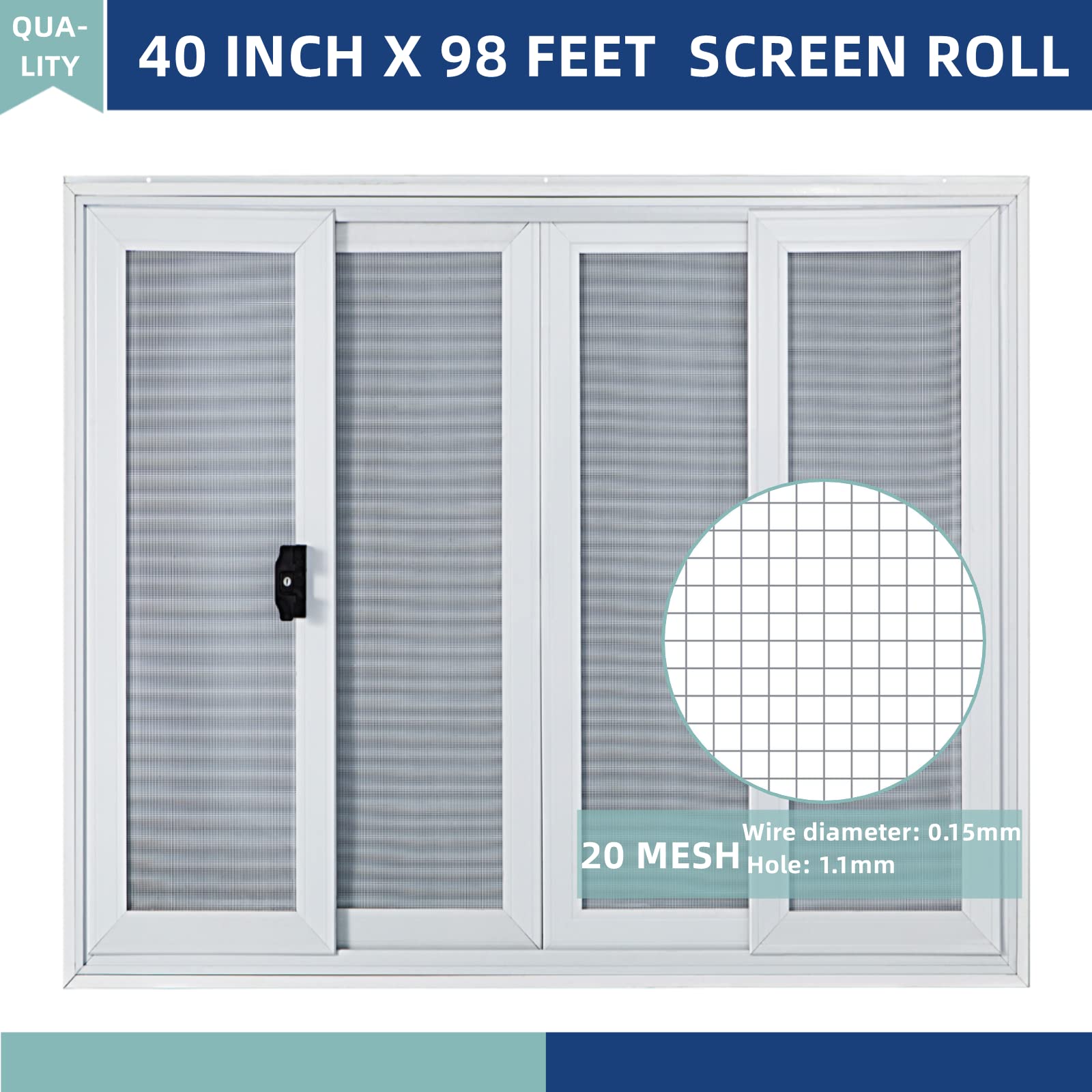 Effective Screen Protection: The window and door screen mesh size is 40 Inch x 98 Feet(1m X 30m), and the aperture is only 0.15mm. It can block the entry of unknown objects, while allowing only cool wind to enter. Window screens provide a good clear view while still maintaining a safety barrier.