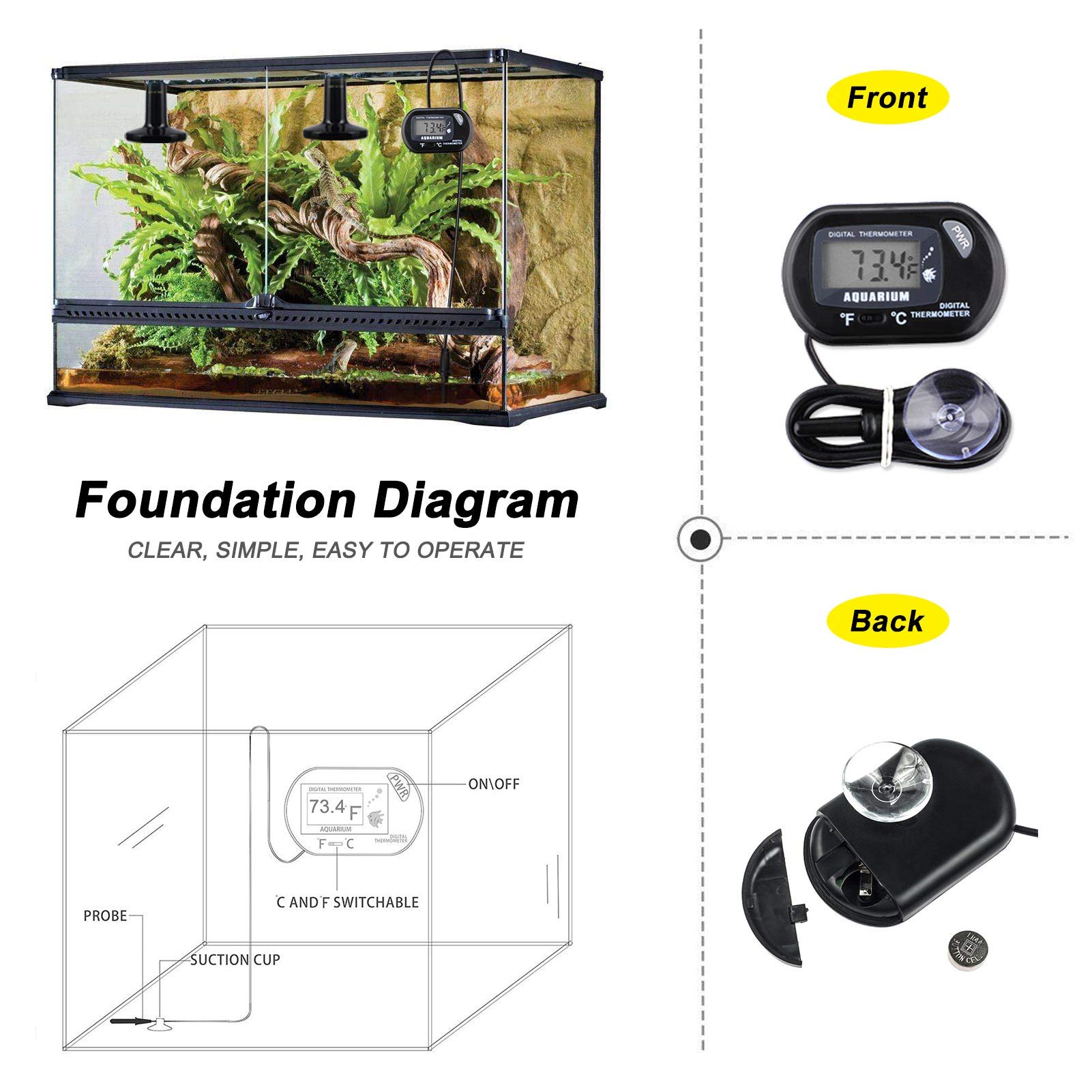 This 75W black infrared heat lamp is made of solid ceramics element, it has a perfect heat radiation feature and no light emitted. Great for pet, lizard, coop, chicken, turtle, snake, chameleon, bearded dragon, aquarium, with one digital thermometer included